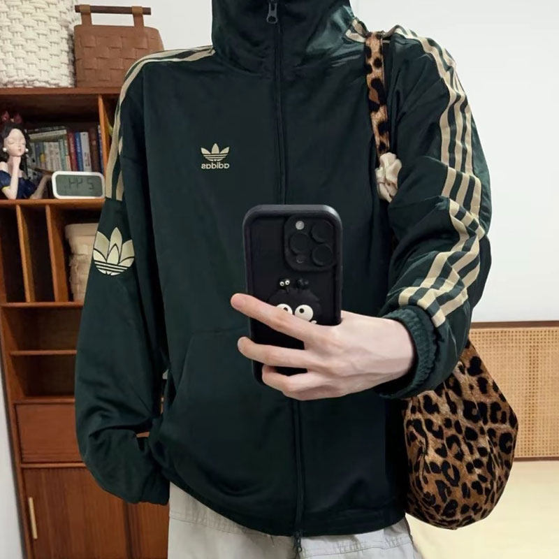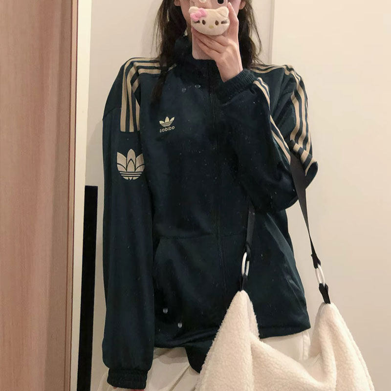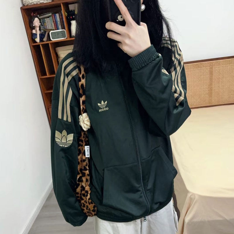 阿迪达斯三叶草外套女春季新款透气美式宽松上衣绿色复古棒球开衫