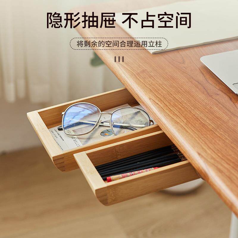 实木桌下抽屉式收纳盒隐形免打孔粘黏办公学习桌下文具杂物等收纳