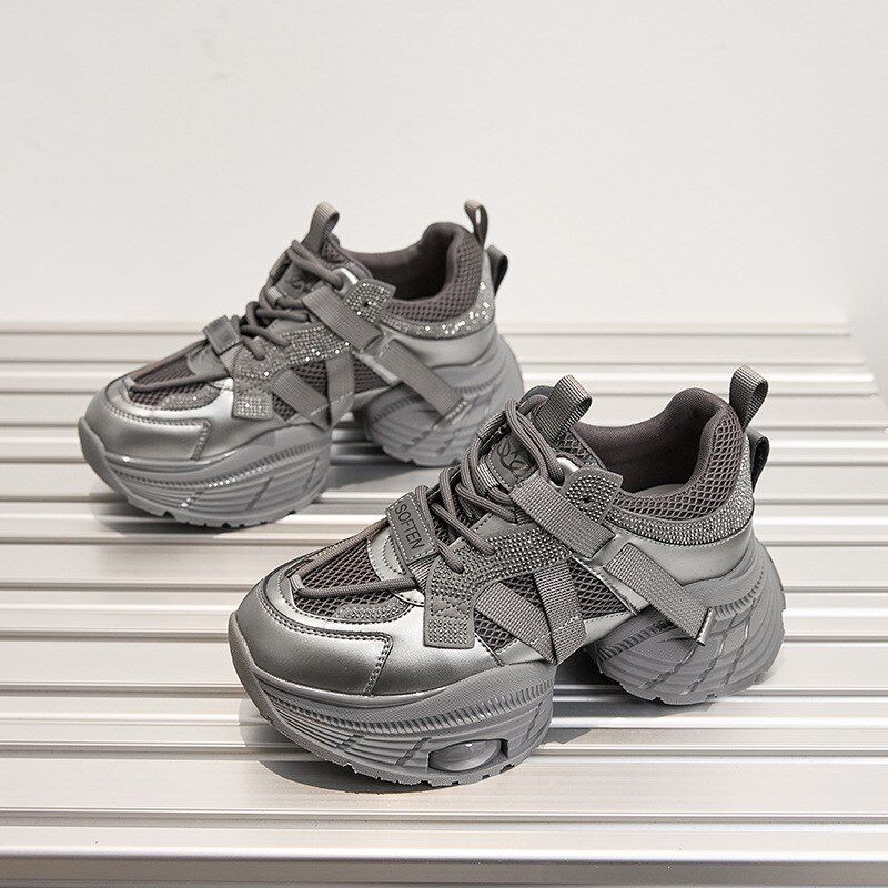 32码33号小码女鞋34码7cm网面透气显脚小老爹鞋女夏小个子增高鞋