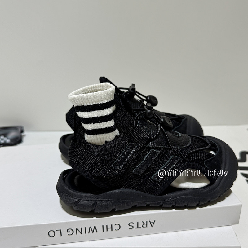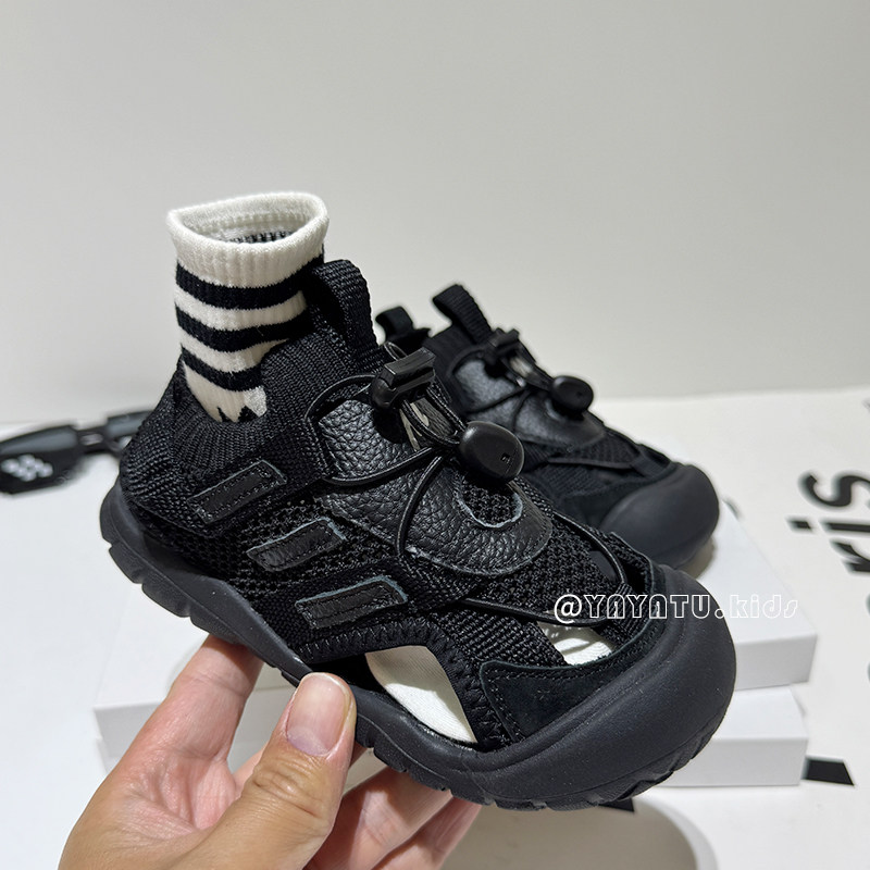 黑色男童凉鞋夏季新款户外儿童溯溪鞋软底防滑女童包头运动凉鞋