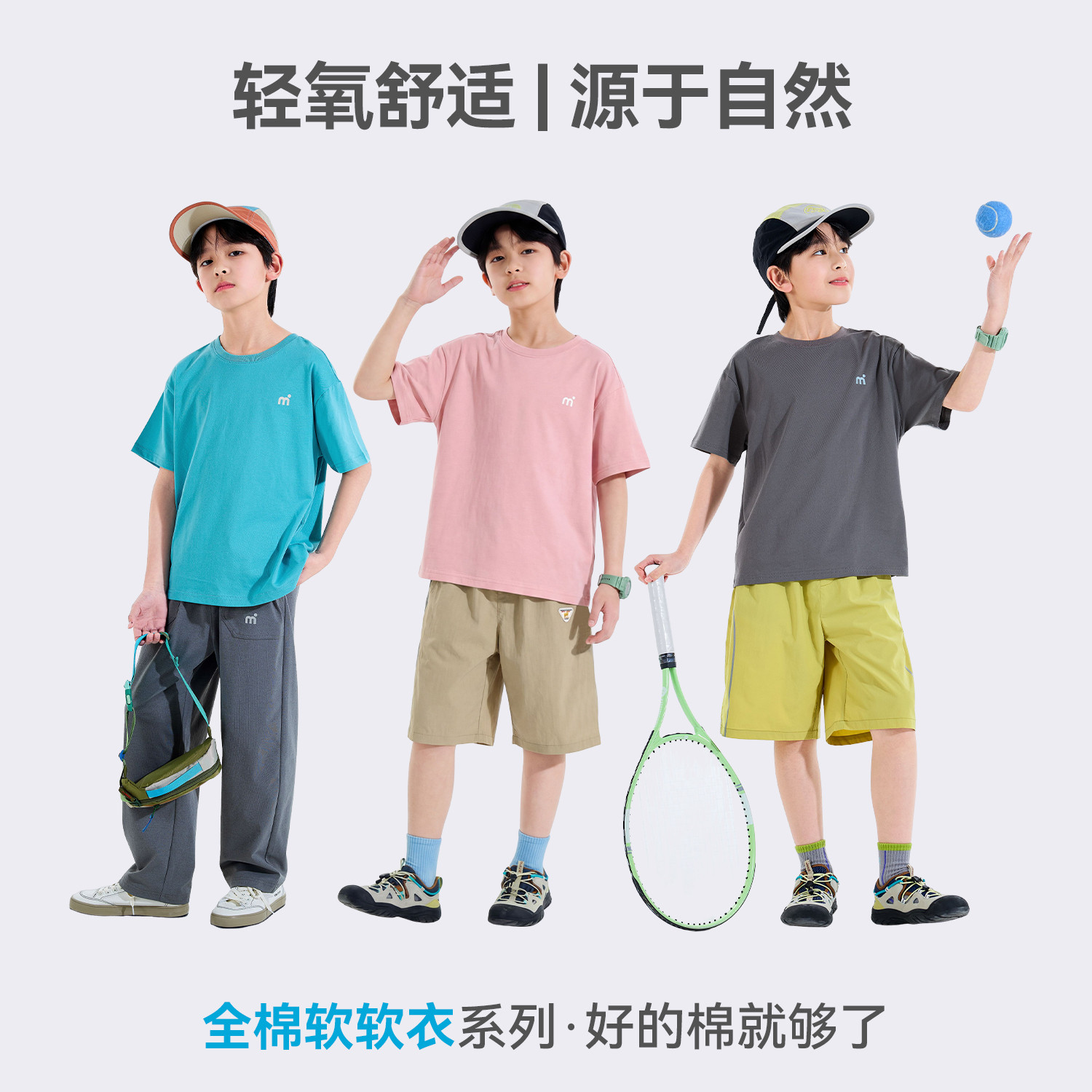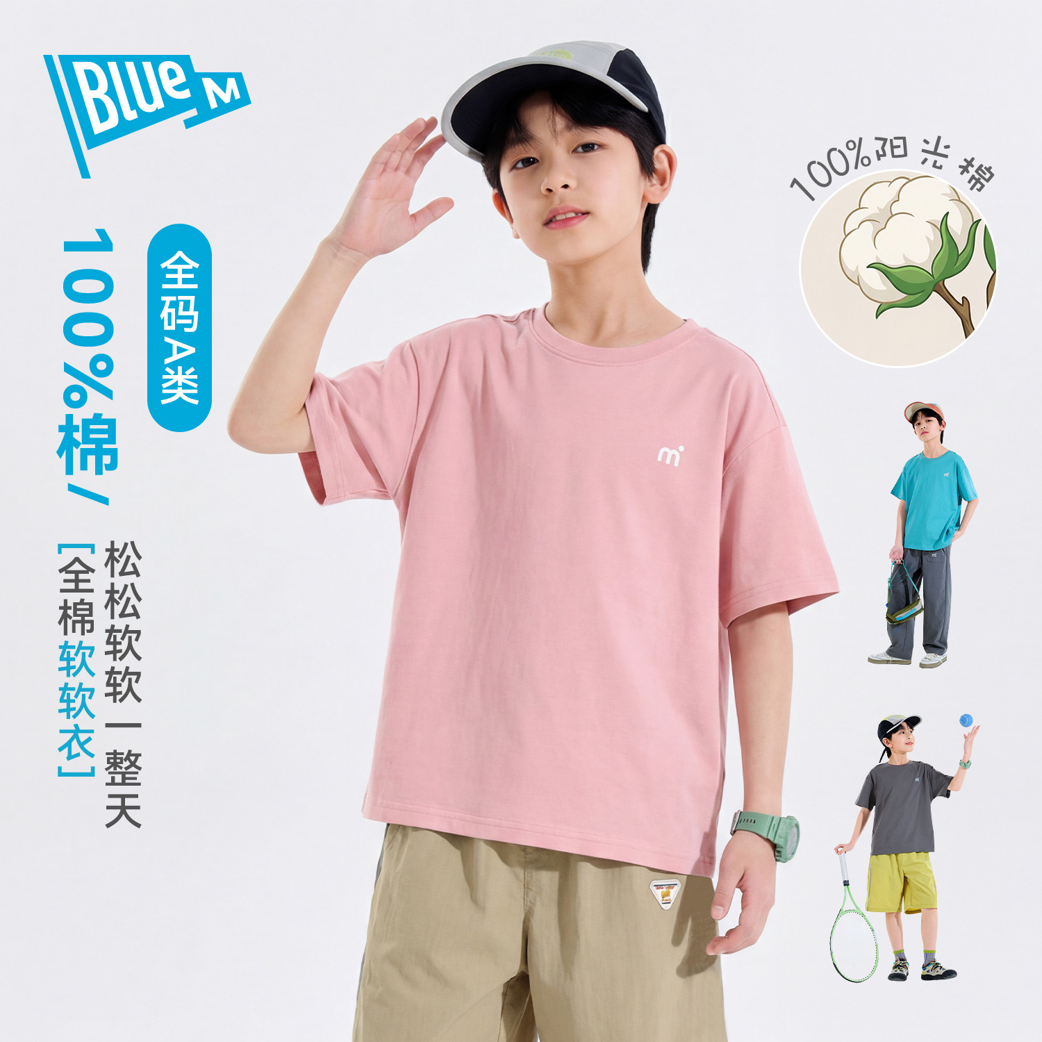 Bluem男童短袖儿童T恤夏季纯棉青少年体恤2026新款大童上衣运动薄