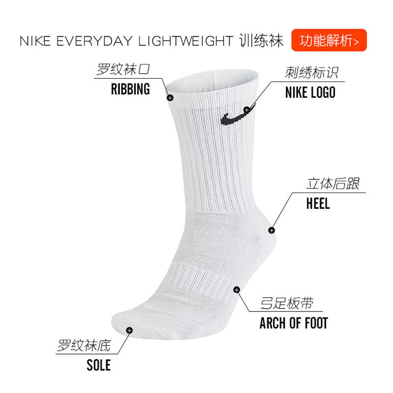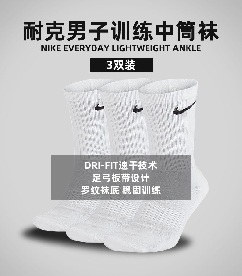 Nike耐克男袜女袜2025秋冬新款三双装中长筒训练袜运动袜子SX7676