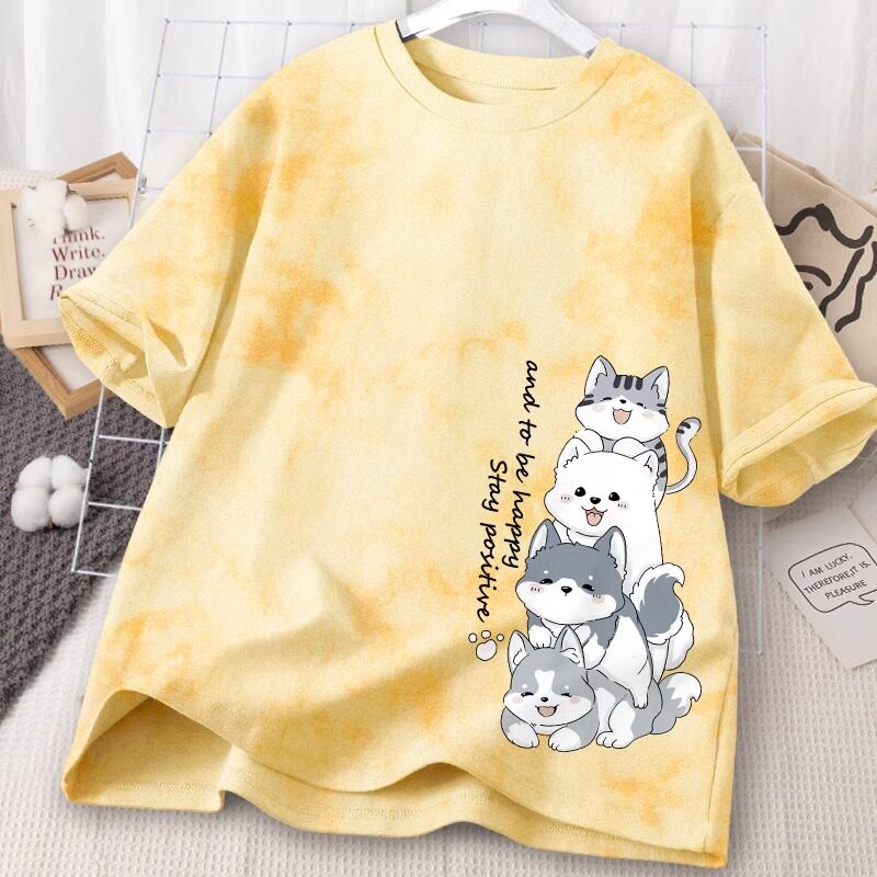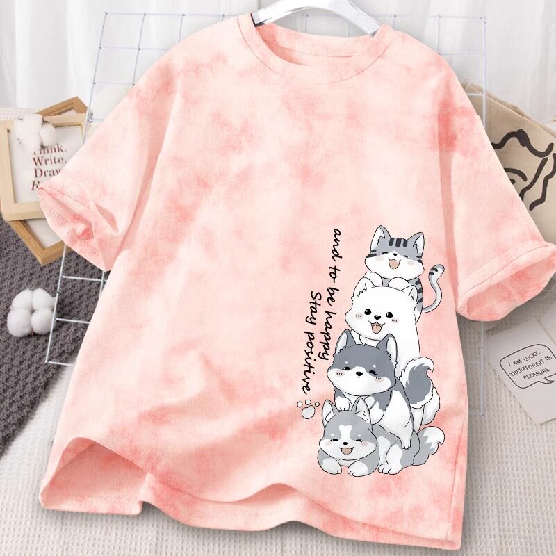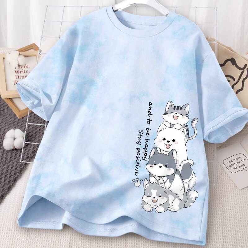 夏季t恤女2025新款宽松遮肉薄款半袖初中生夏款扎染短袖上衣圆领