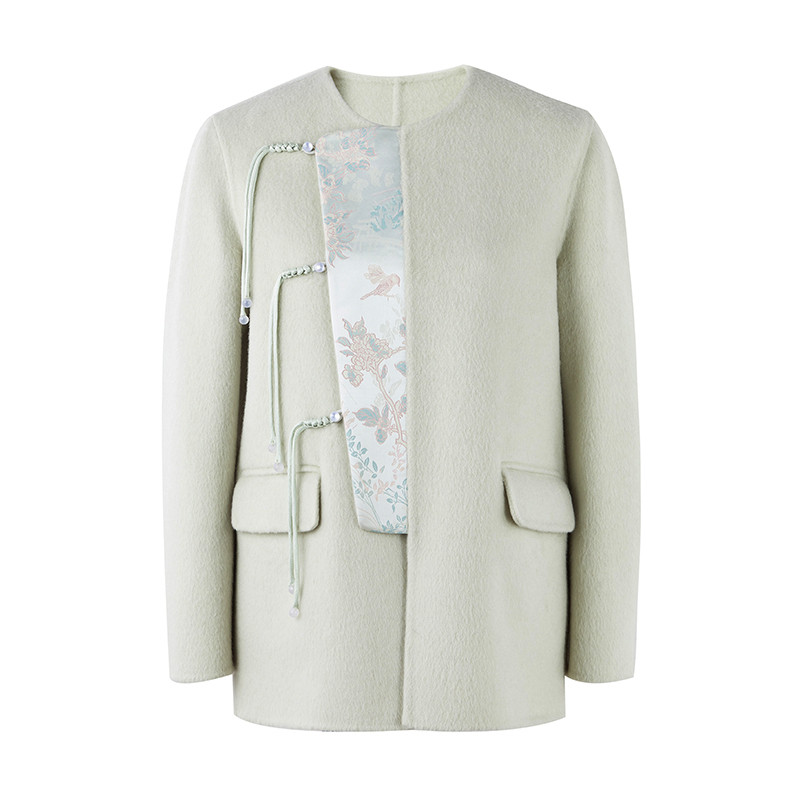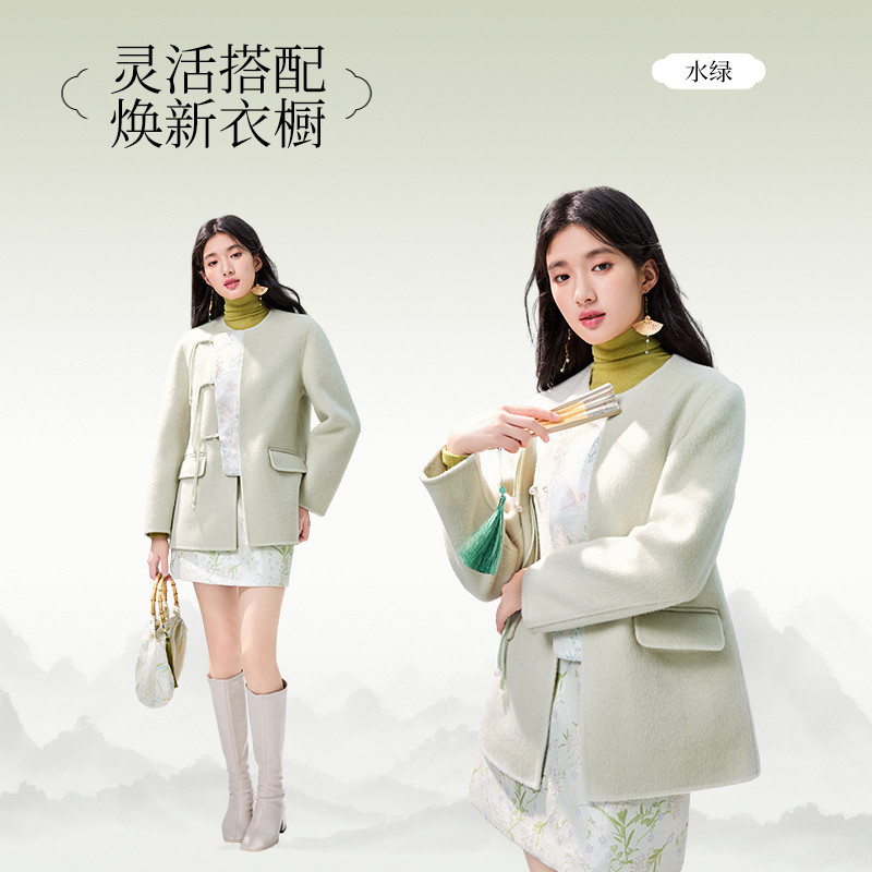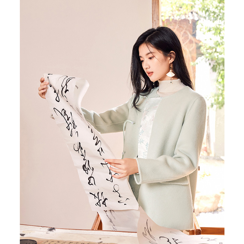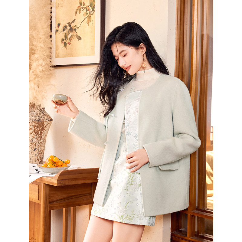 秋水伊人新中式双面呢外套2025年冬季新款女装国风缎面绵羊毛大衣