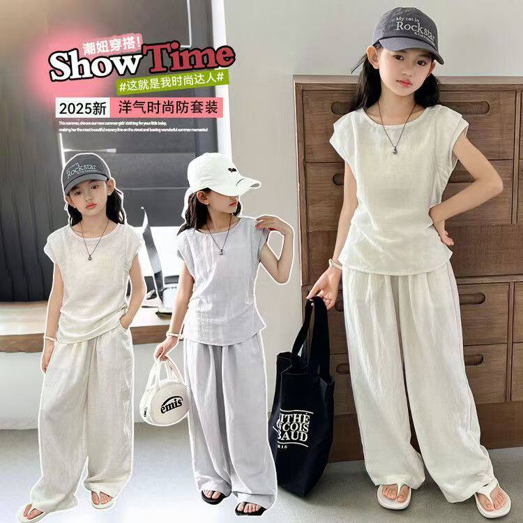 女童套装夏季26款洋气舒适宽松休闲运动童装显瘦夏天公主学院简约