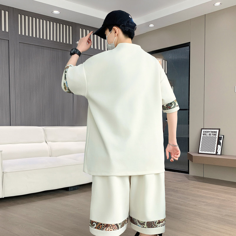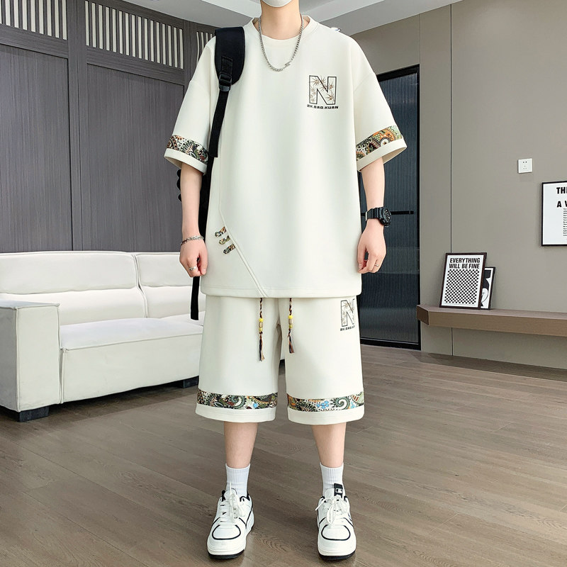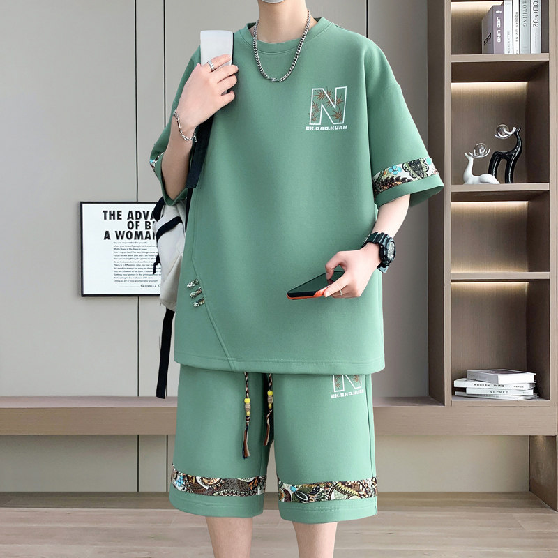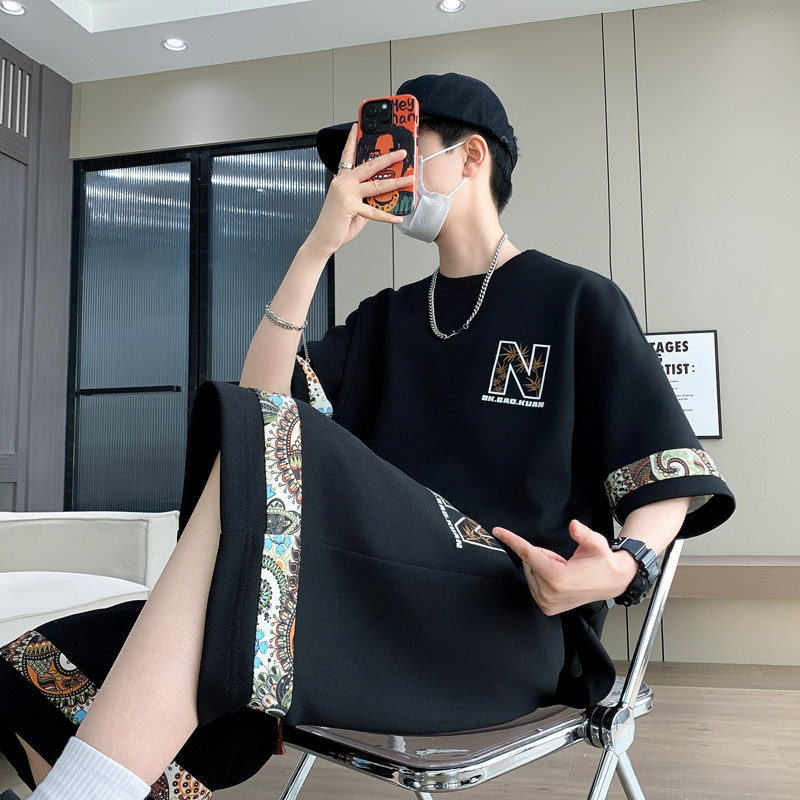 大码男装100-280斤冰丝短袖t恤男青少年夏装帅气短袖休闲运动套装