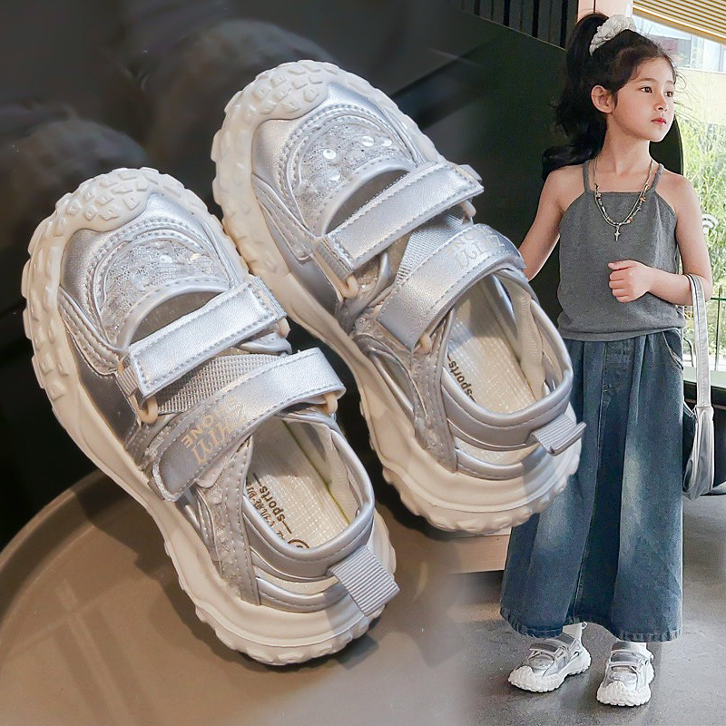 女童包头凉鞋2026春夏中大童女孩运动风魔术贴亮片防滑软底休闲鞋