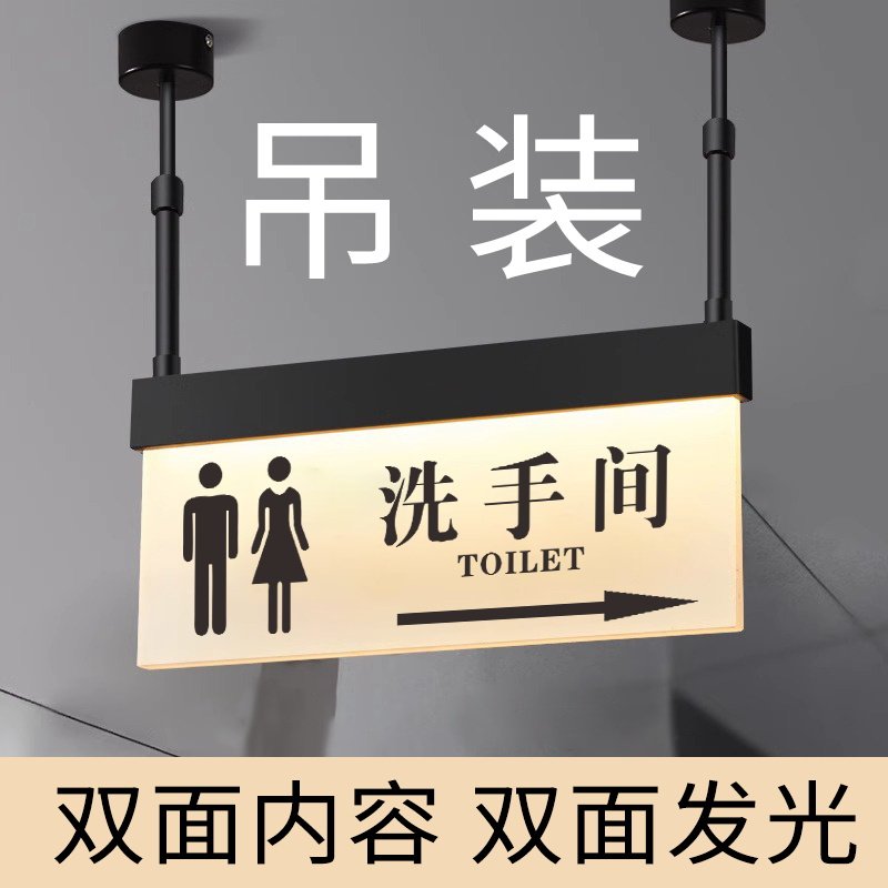 悬挂双面发光天花板吊装男女厕所洗手间带亮灯导向电梯间收银台指示牌定制酒店商场公共写字楼卫生间标识