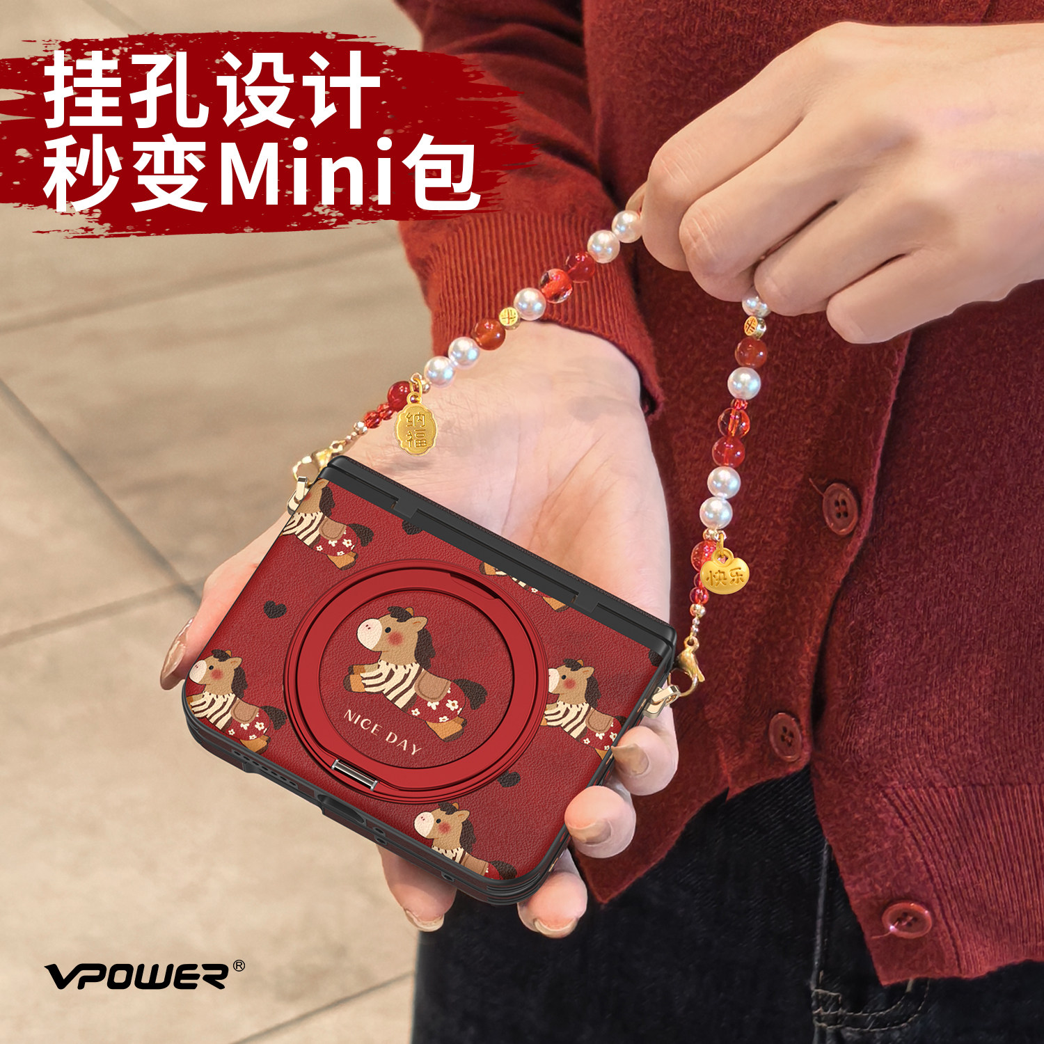 复古小马红适用华为Purax手机壳新款红色Pura X典藏版360度旋转支架外壳中轴全包带挂绳本命年女秋冬保护套