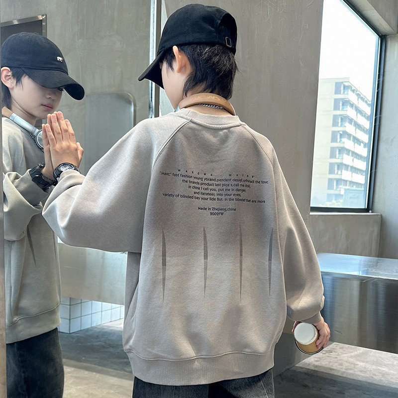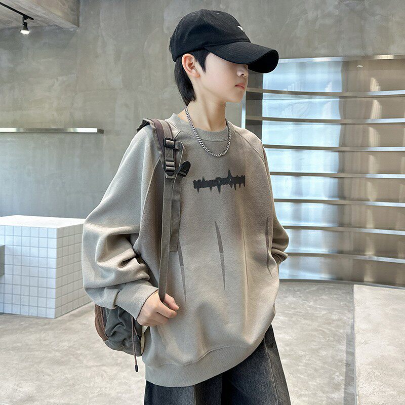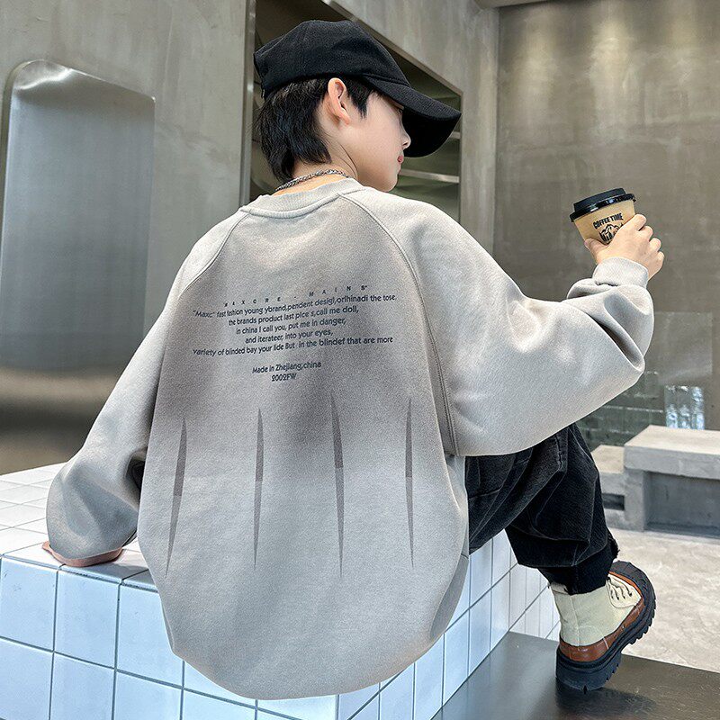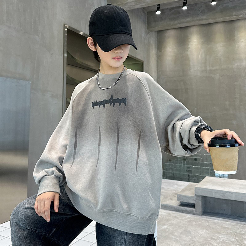 男童春秋潮牌渐变宽松圆领卫衣2026新款儿童男孩春装酷帅运动上衣