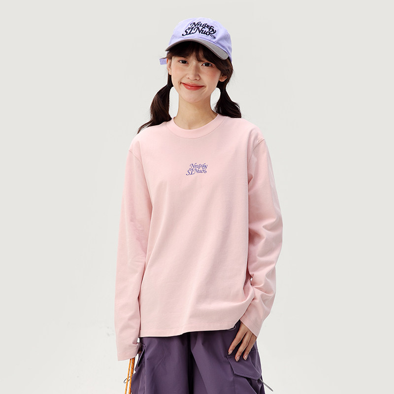 诺诺公主S1N初中生长袖白T恤女春季新款彩色微宽松纯色大童上衣