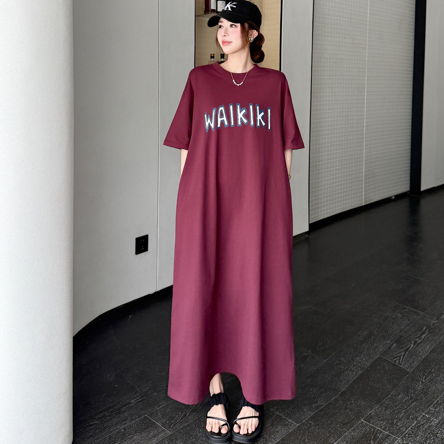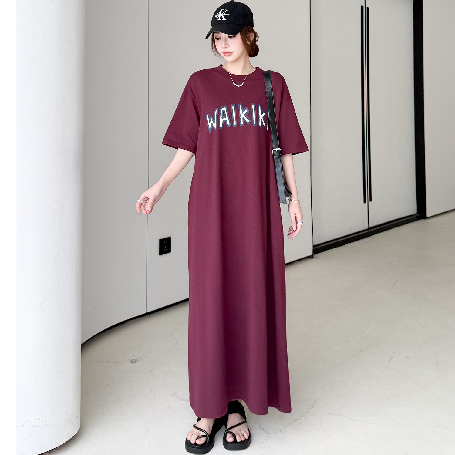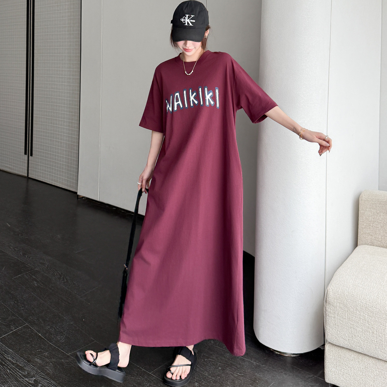 字母印花超长款到脚踝T恤裙女夏季新款宽松显瘦直筒懒人连衣裙子