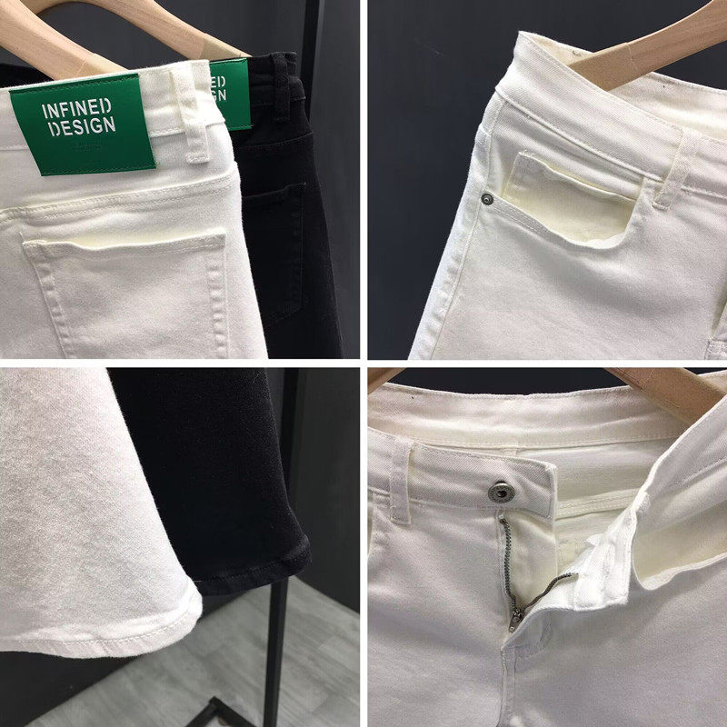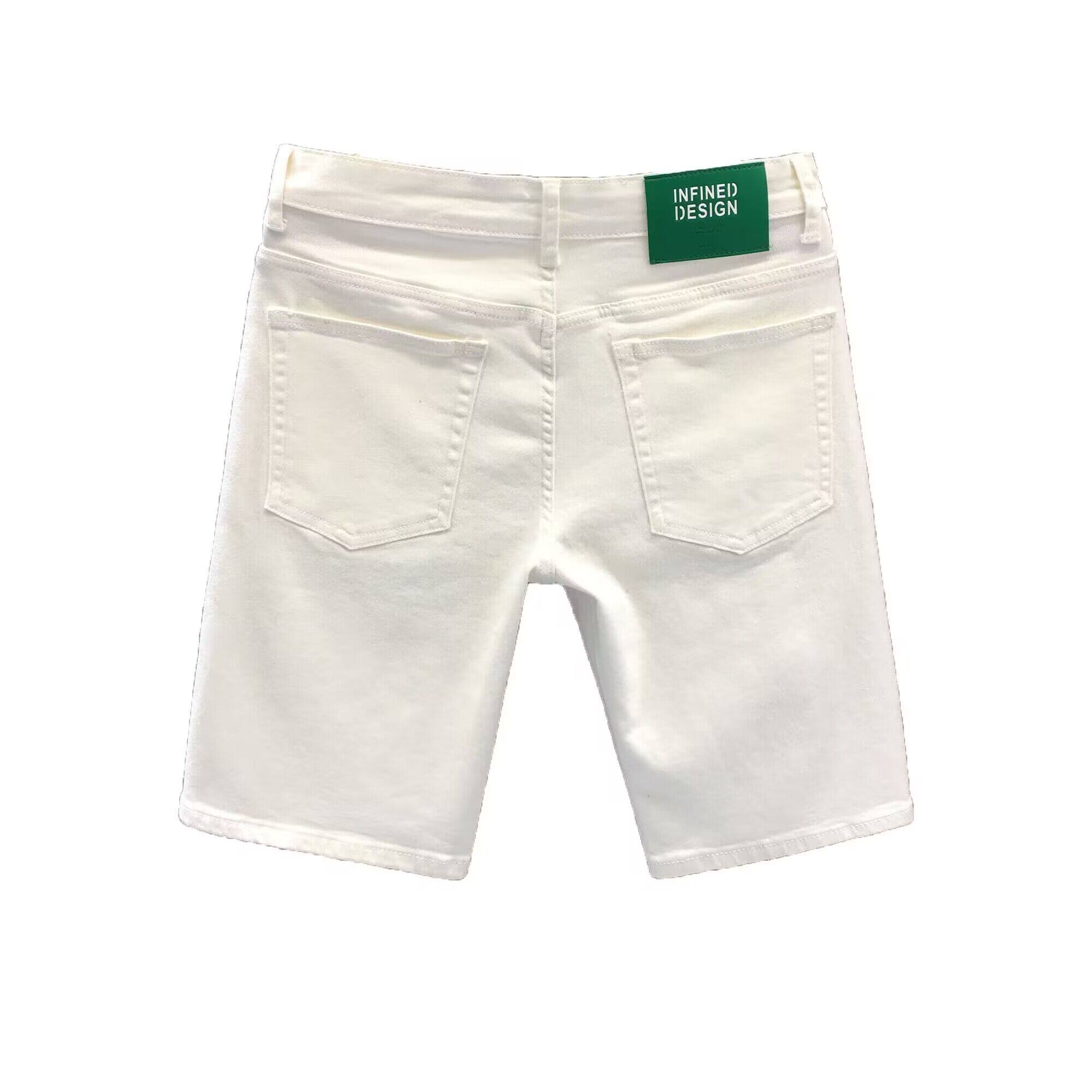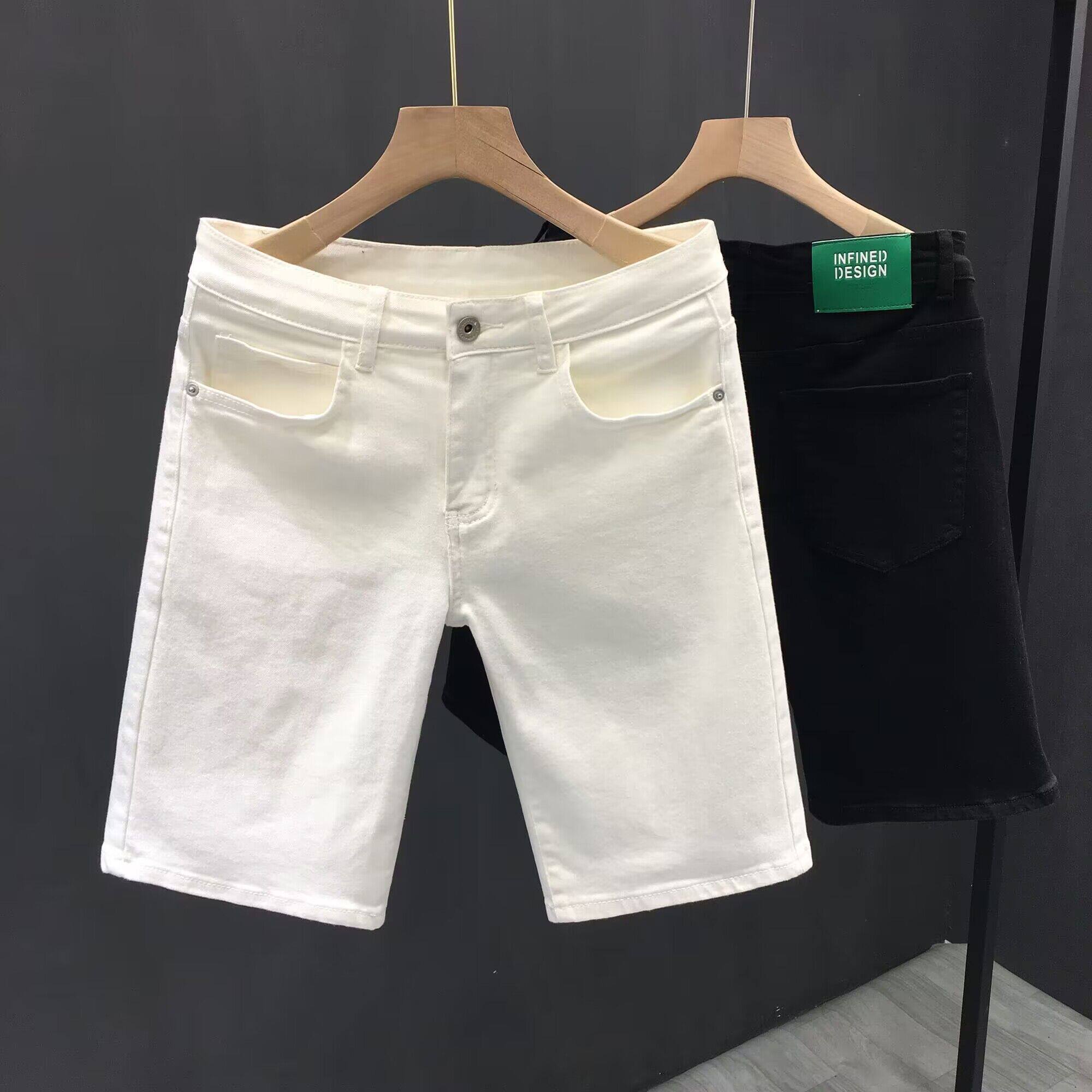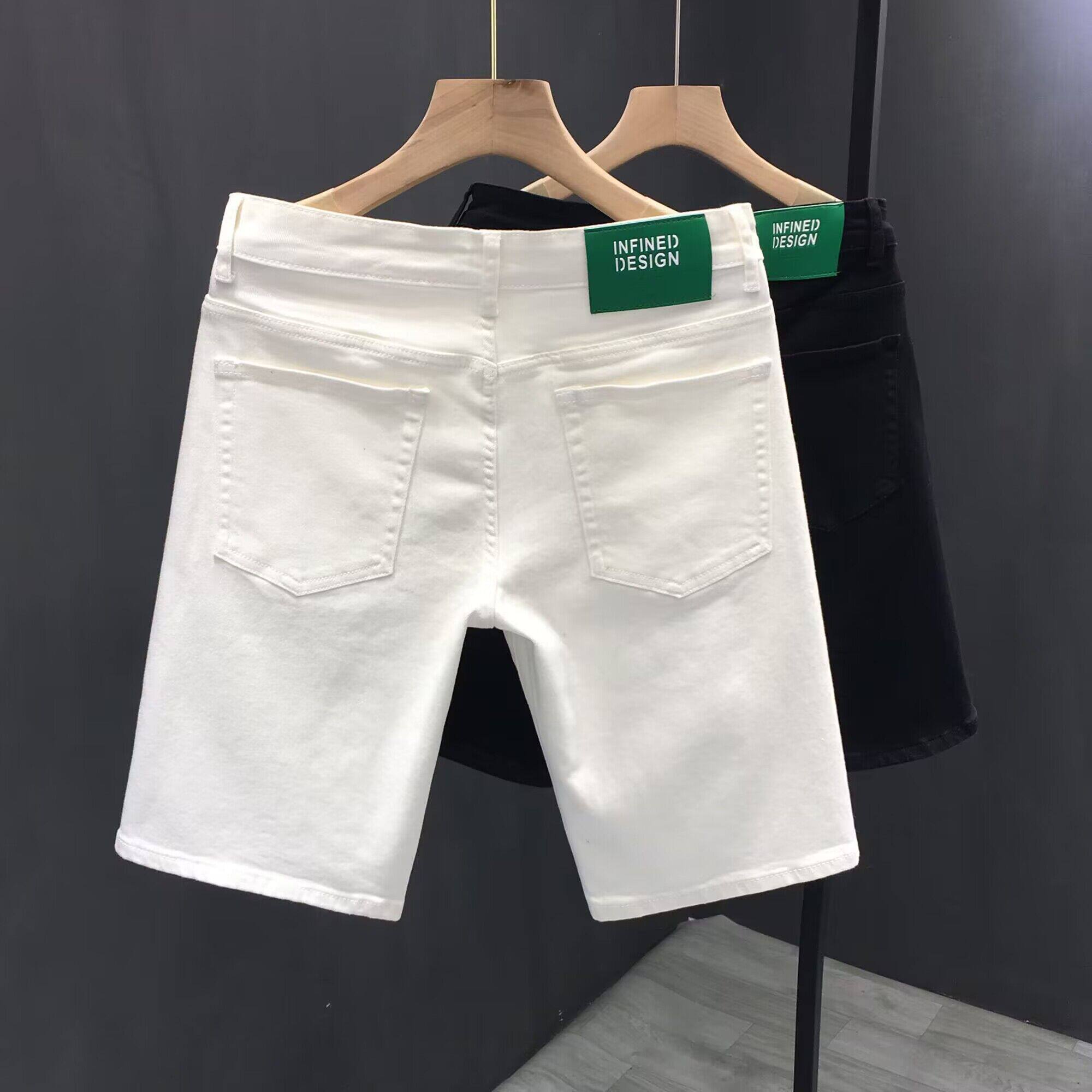 2025夏季薄款修身中裤男款白色牛仔短裤潮流弹力男士显瘦五分裤子