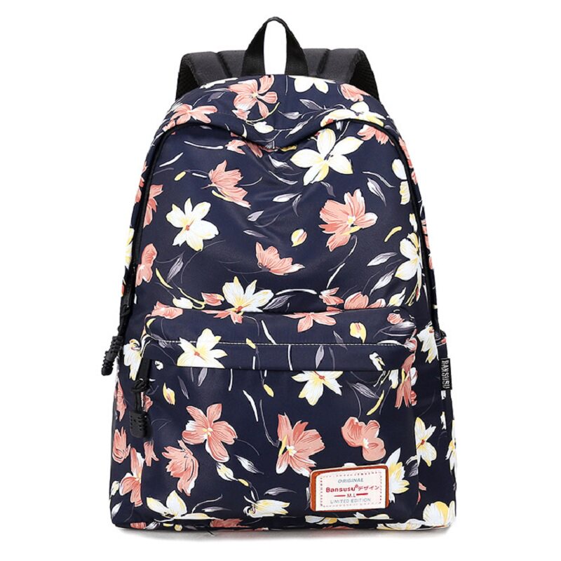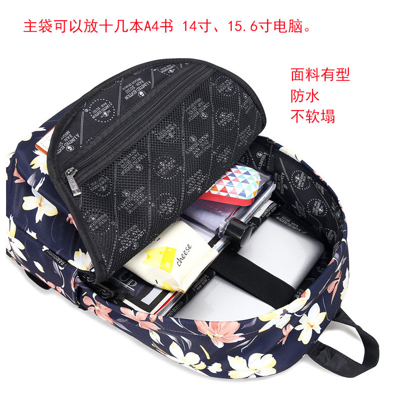花色简约旅游双肩包女2025新款休闲时尚大容量牛津布印花帆布电脑