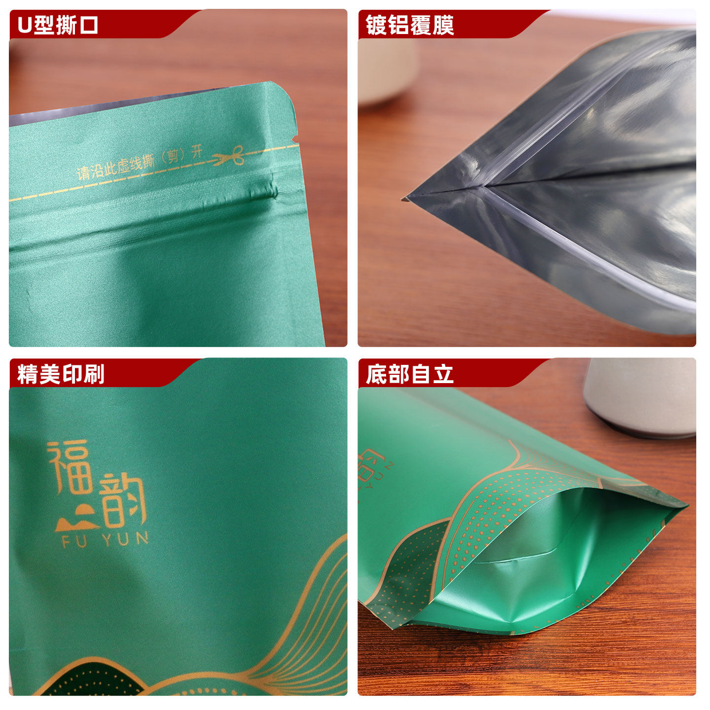 茶叶加厚包装袋绿茶通用牛皮纸防潮铝箔密封袋红茶自封立袋子定制