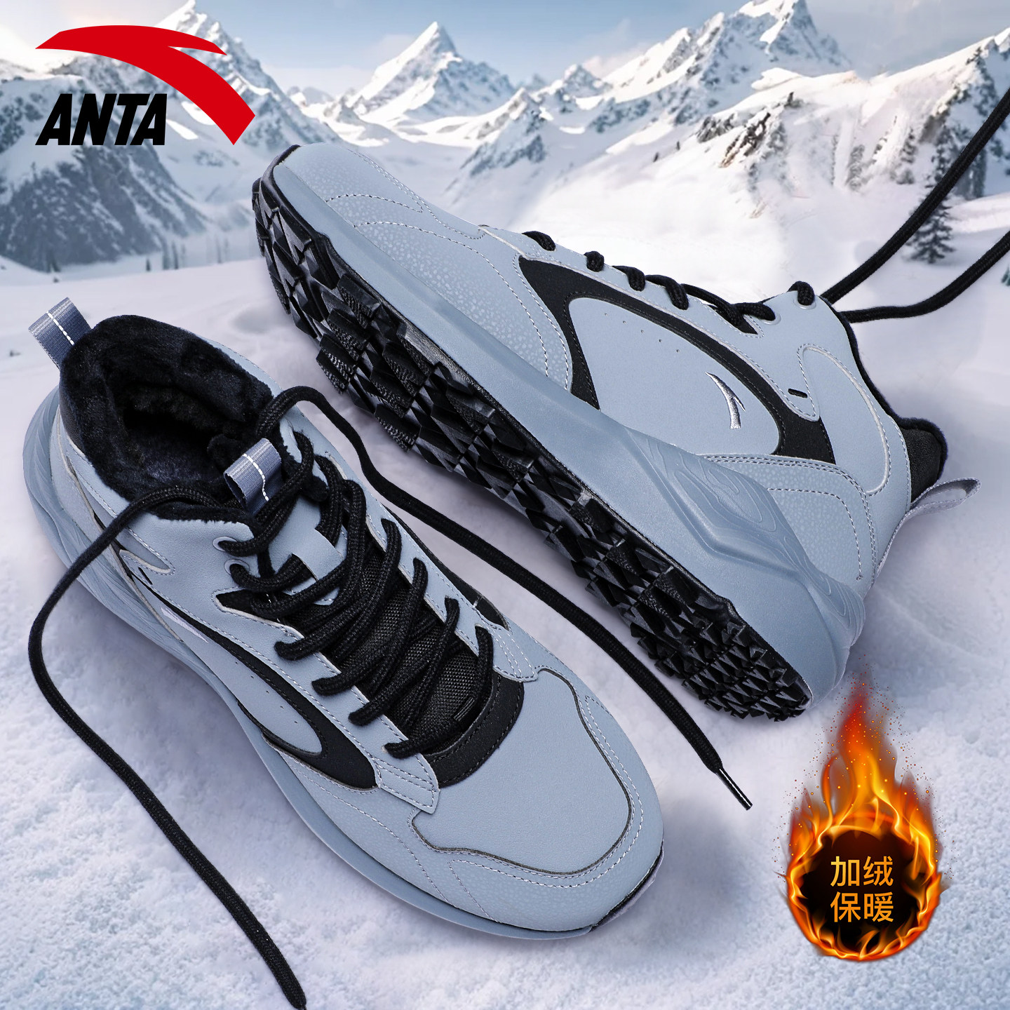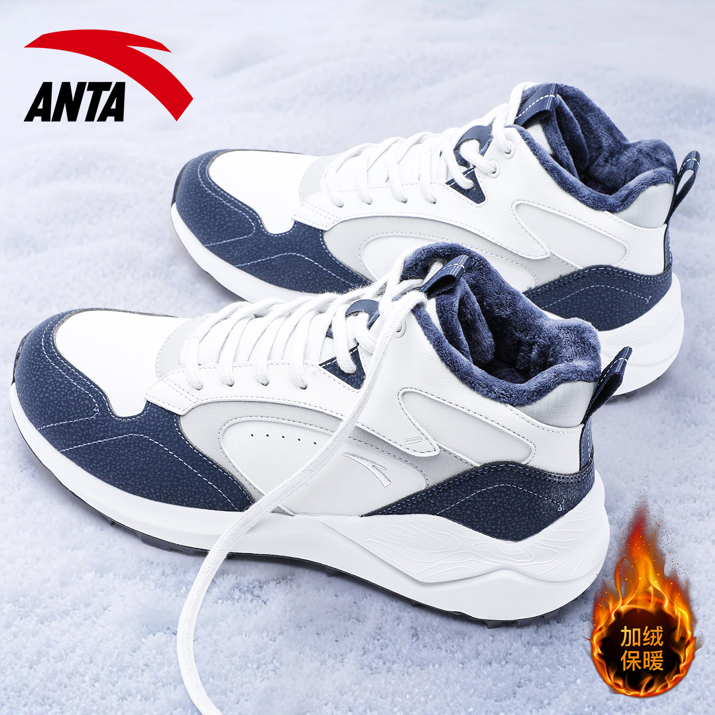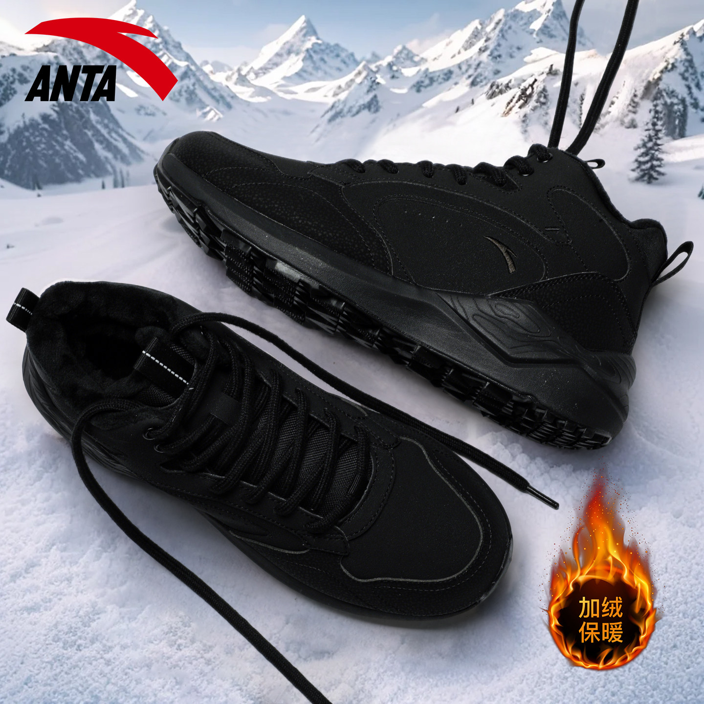 安踏男鞋加绒高帮二棉鞋冬季2026新款皮面保暖男士雪地靴休闲鞋子