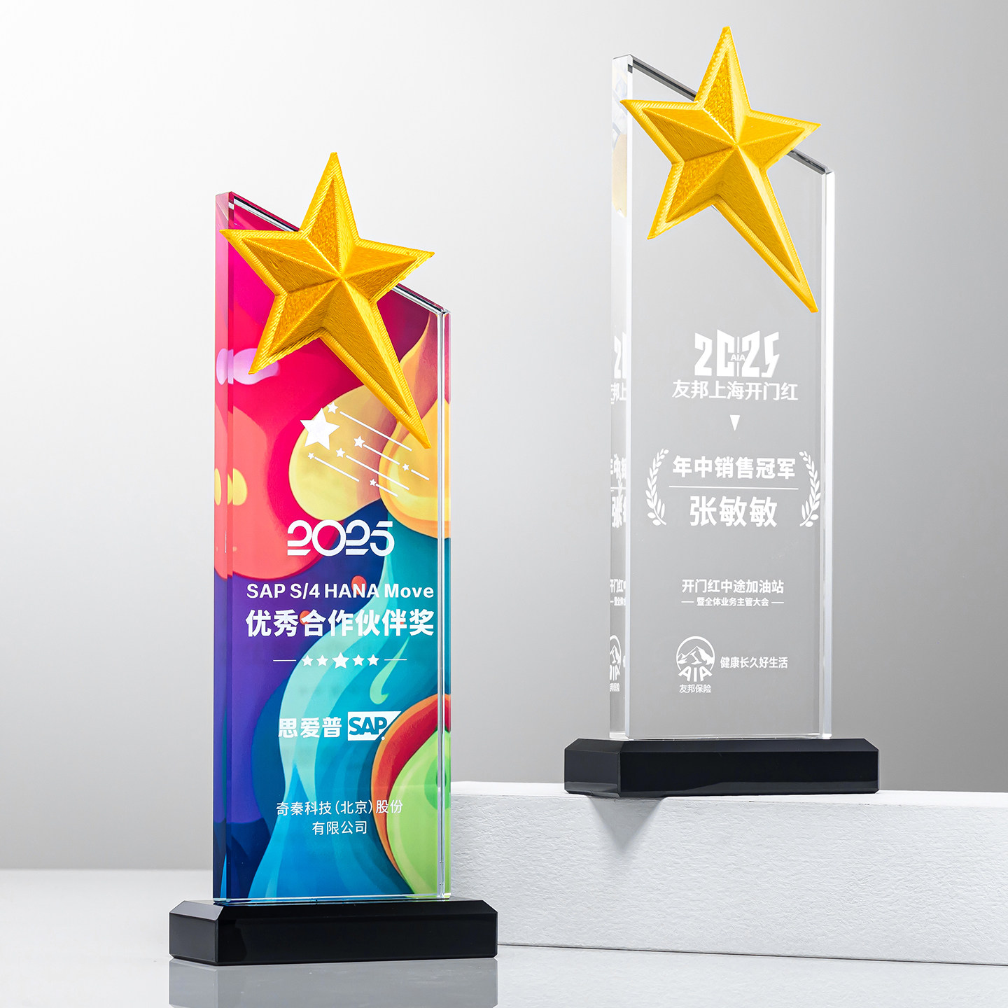 创意五角星水晶奖杯奖牌定制年会颁奖优秀员工供应商季度之星阅读之星管理奋斗之星销售冠军奖牌
