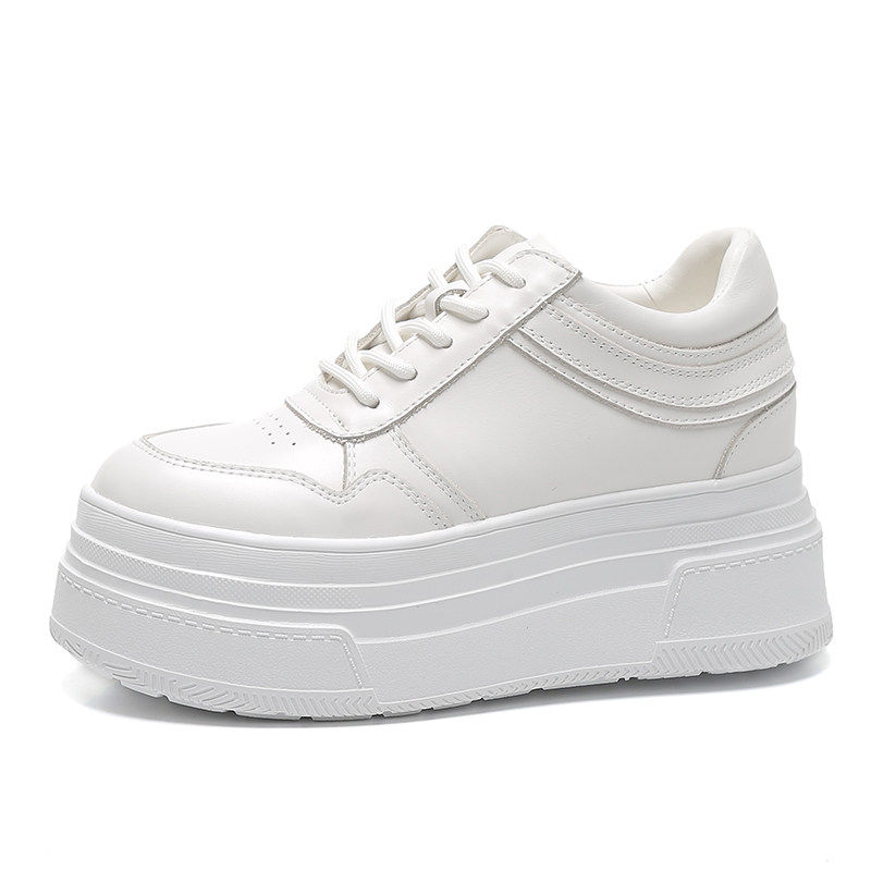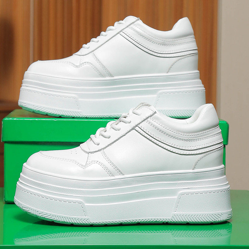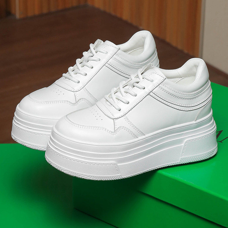 14公分小白鞋女款春季真皮12CM小个子内增高女鞋百搭休闲厚底板鞋