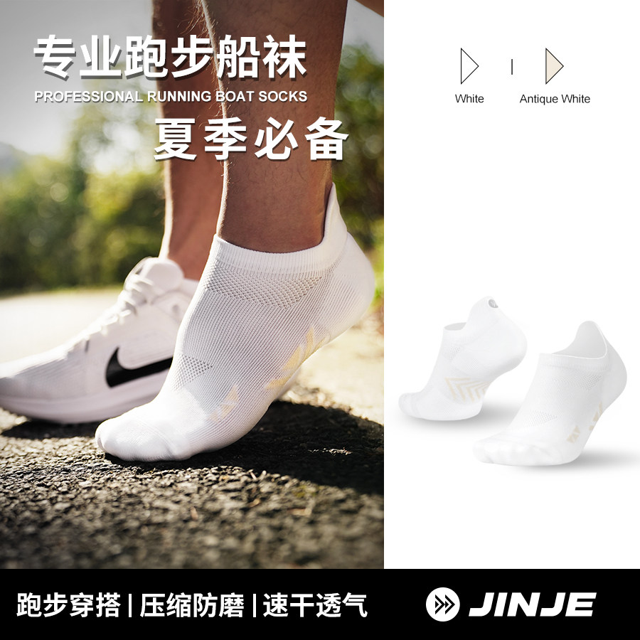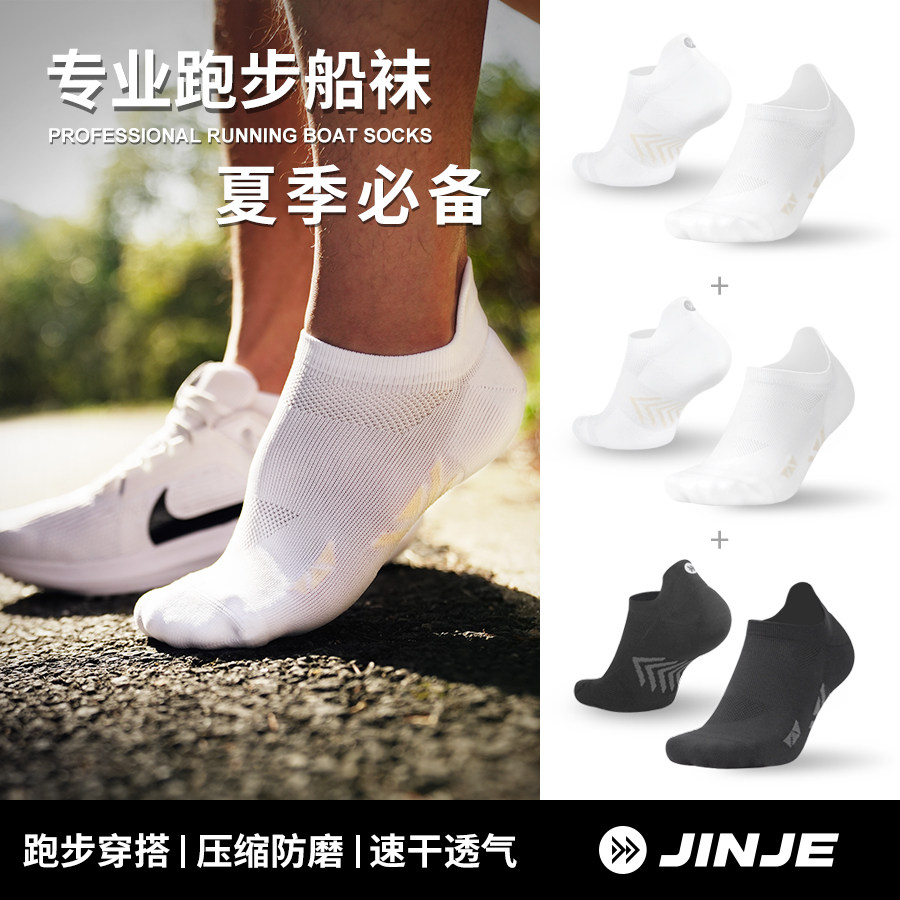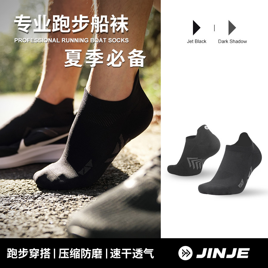 JINJE径界 专业运动袜子 马拉松装备 训练课黑色白色袜子运动船袜