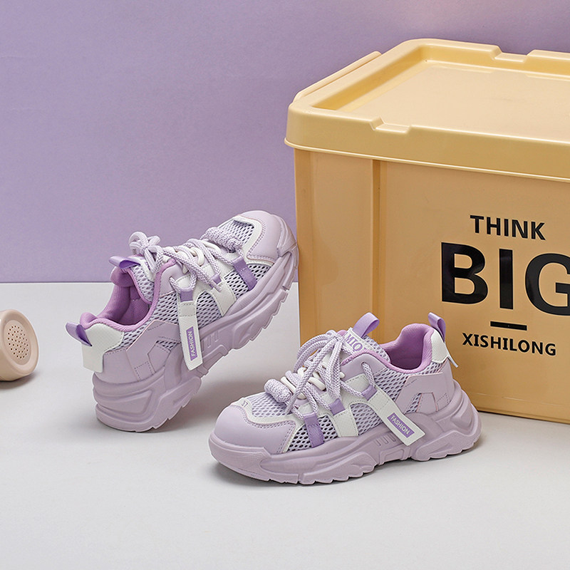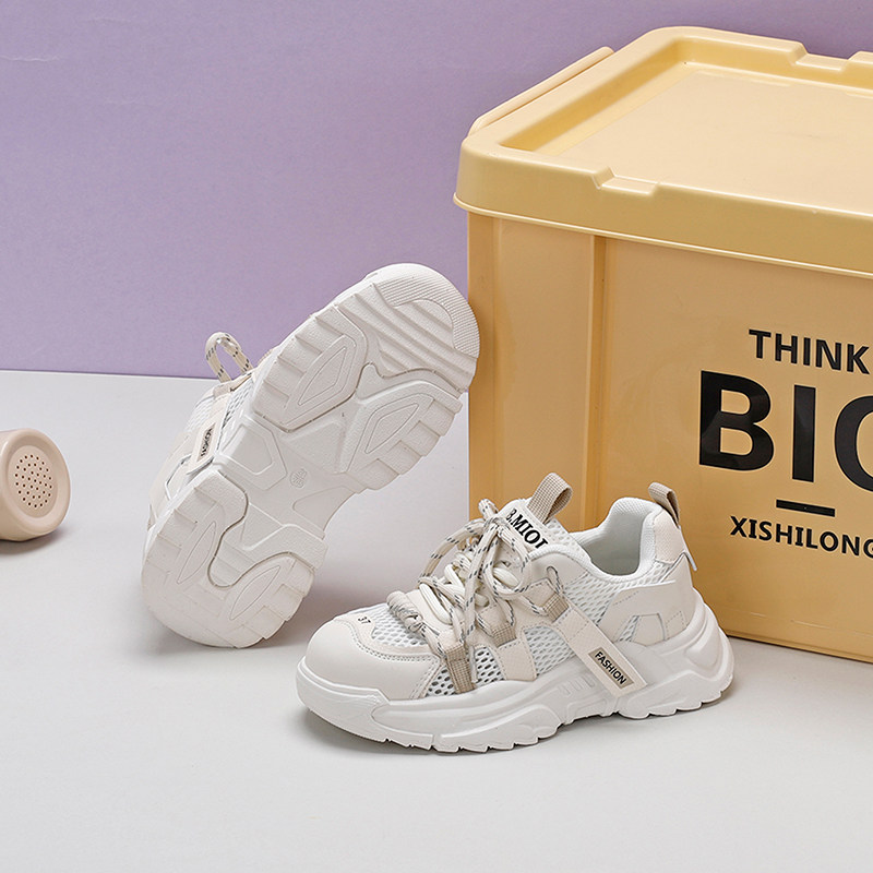 开心米奇女童鞋2026夏季透气镂空网面儿童老爹鞋舒适大网眼运动鞋