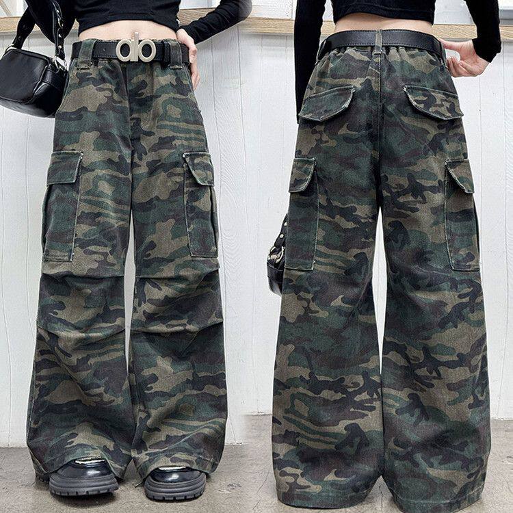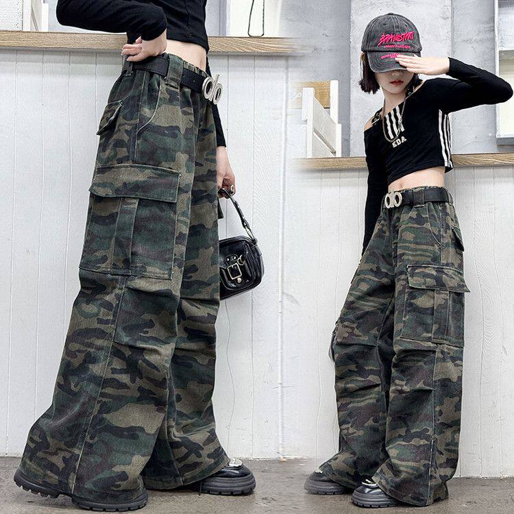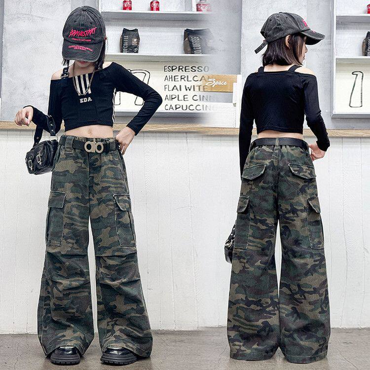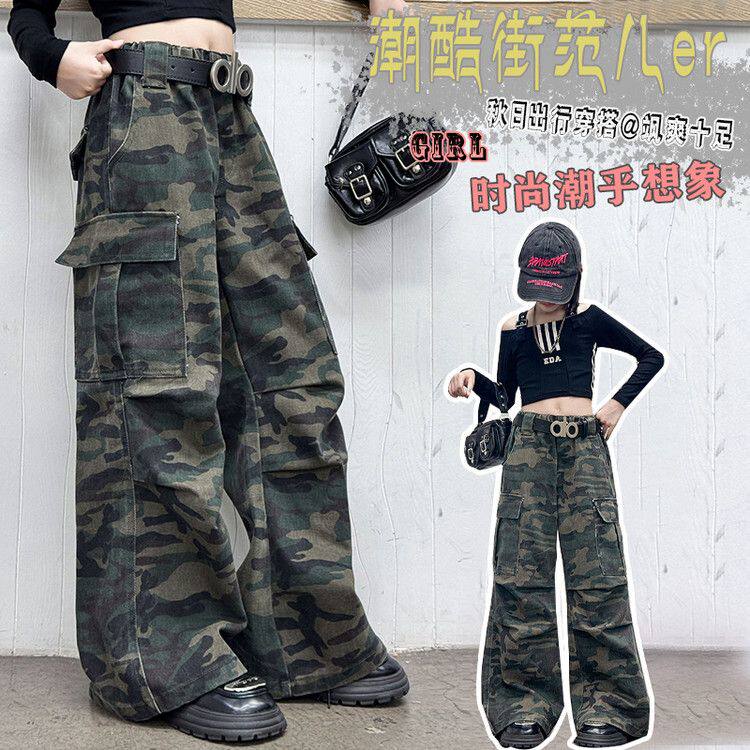 女童迷彩工装裤春装2026新款儿童炸街裤子女大童阔腿牛仔裤初中生