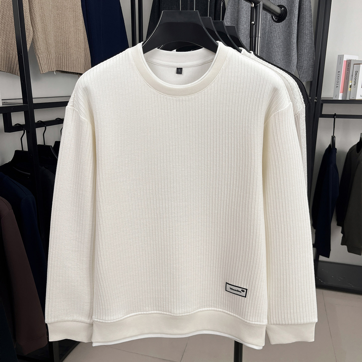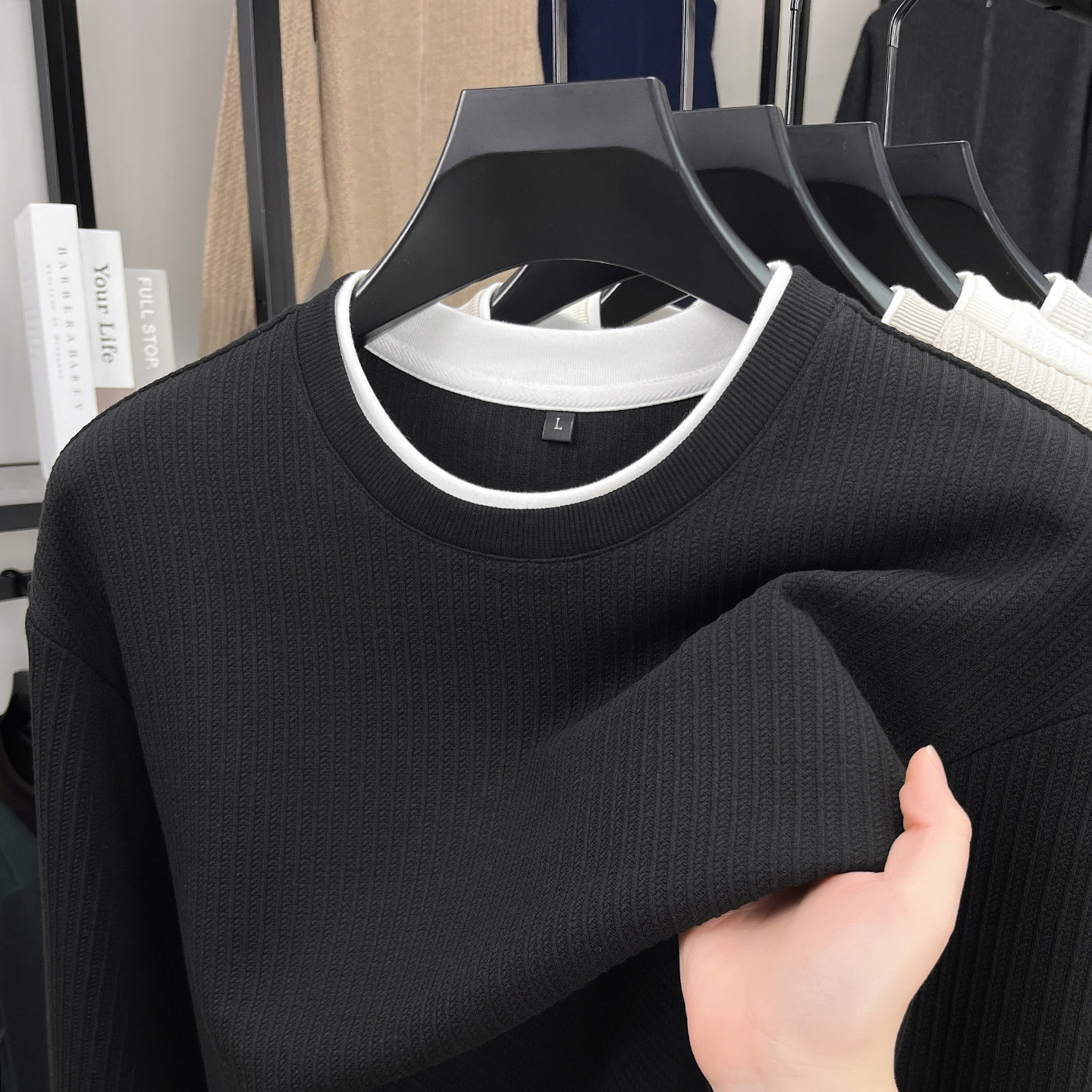 假两件圆领卫衣男款秋冬季加厚套头上衣服宽松t恤男长袖纯色百搭