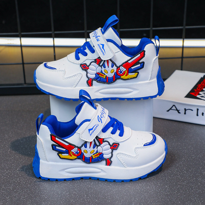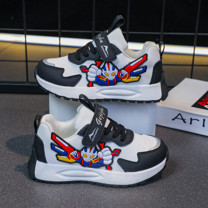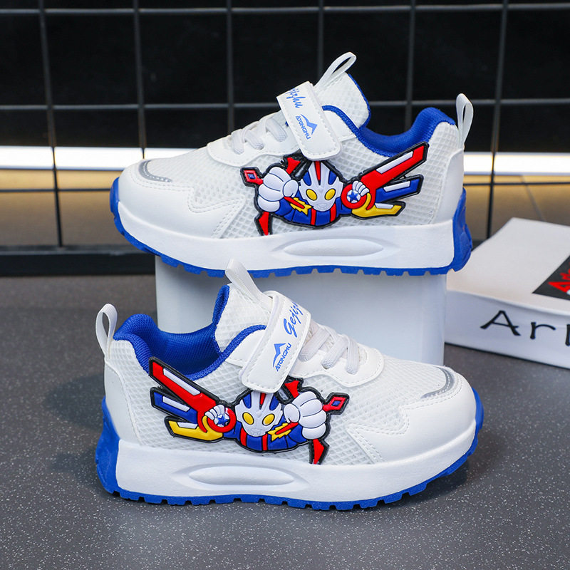 奥特曼男童鞋子网面透气2025新款春秋儿童运动鞋男孩皮面老爹鞋潮