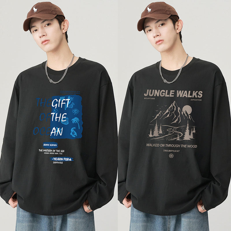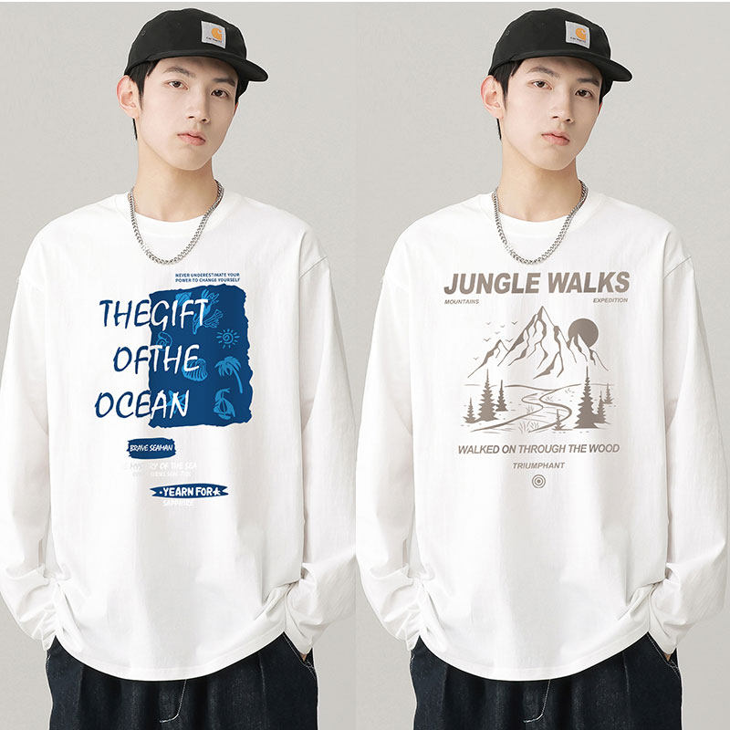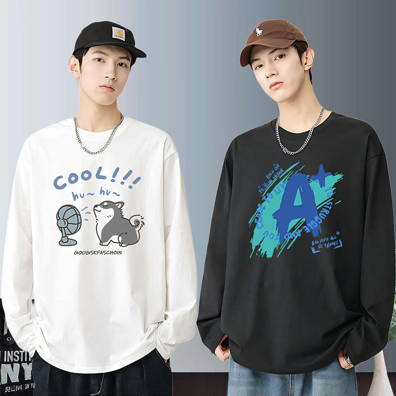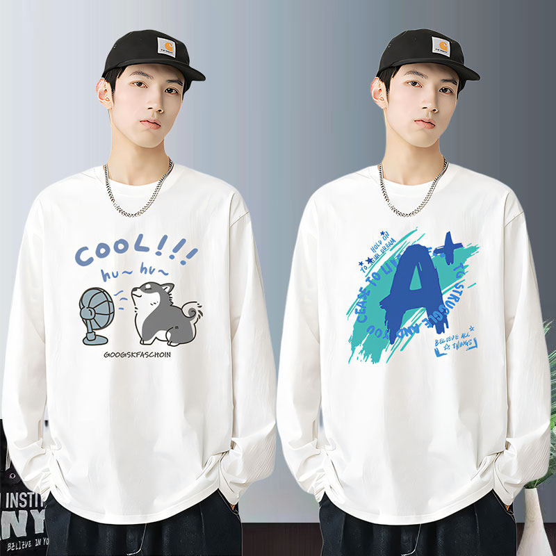 青少年纯棉长袖t恤男孩初中高中学生打底衫大童潮牌帅气男装上衣