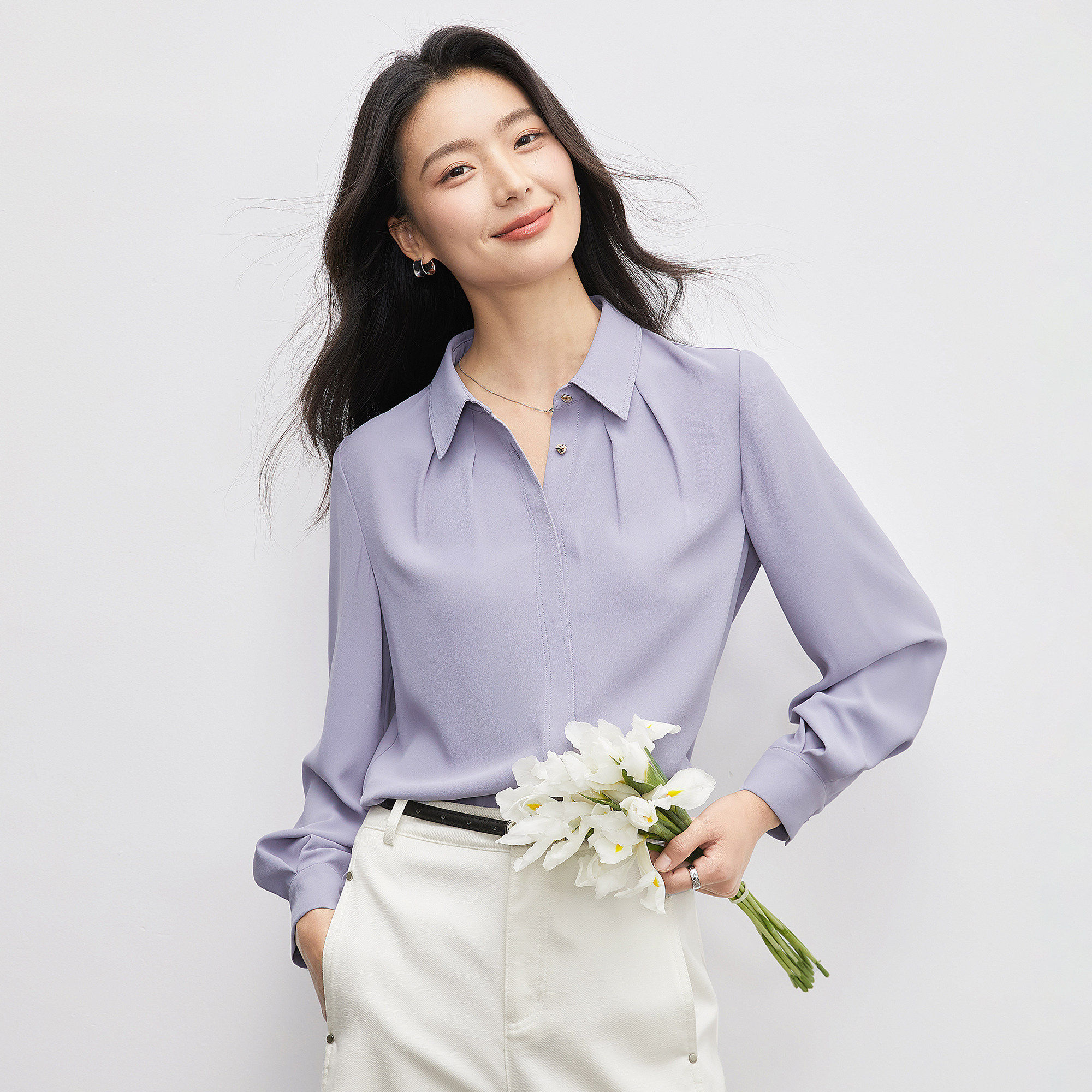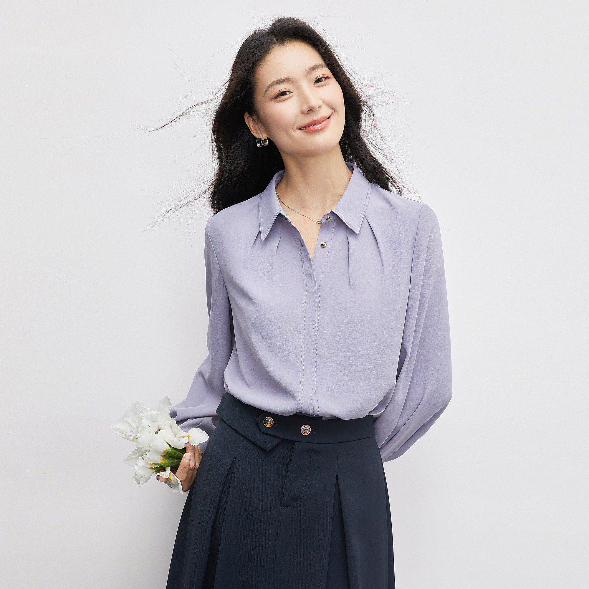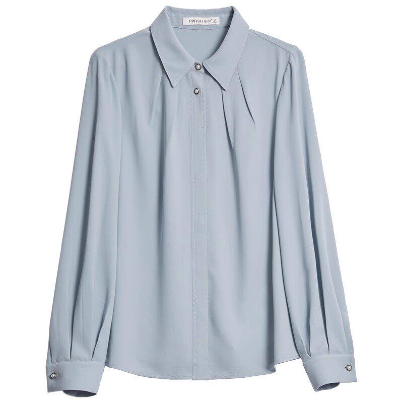 曼贝蓝色衬衫女春装女款2026年新款爆款通勤气质上衣内搭雪纺衬衫