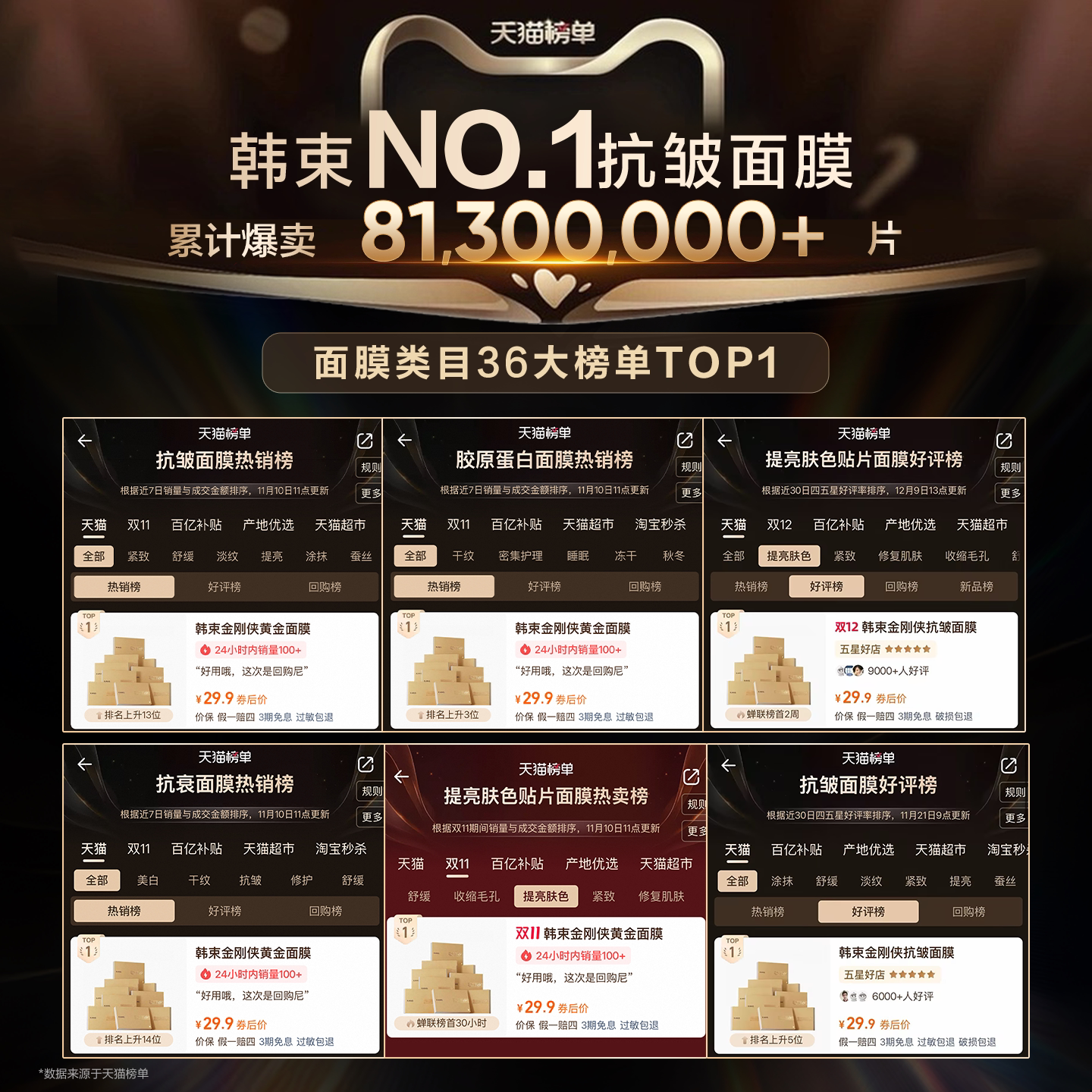 韩束黄金胶原炮抗皱紧致淡纹金刚侠面膜补水保湿修护舒缓提亮肤色