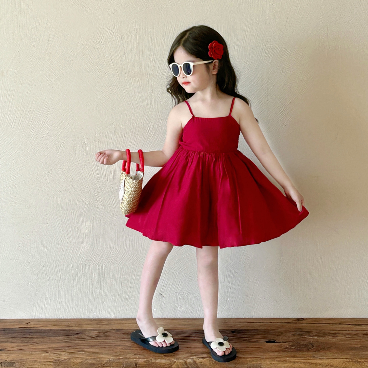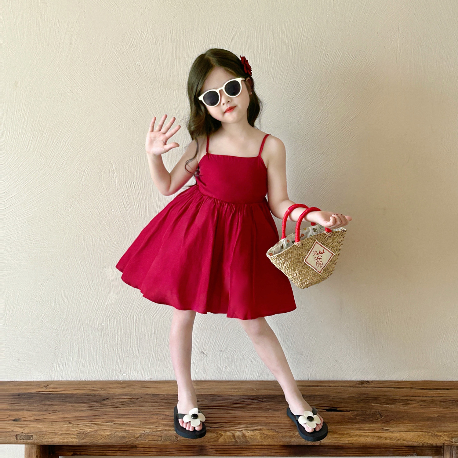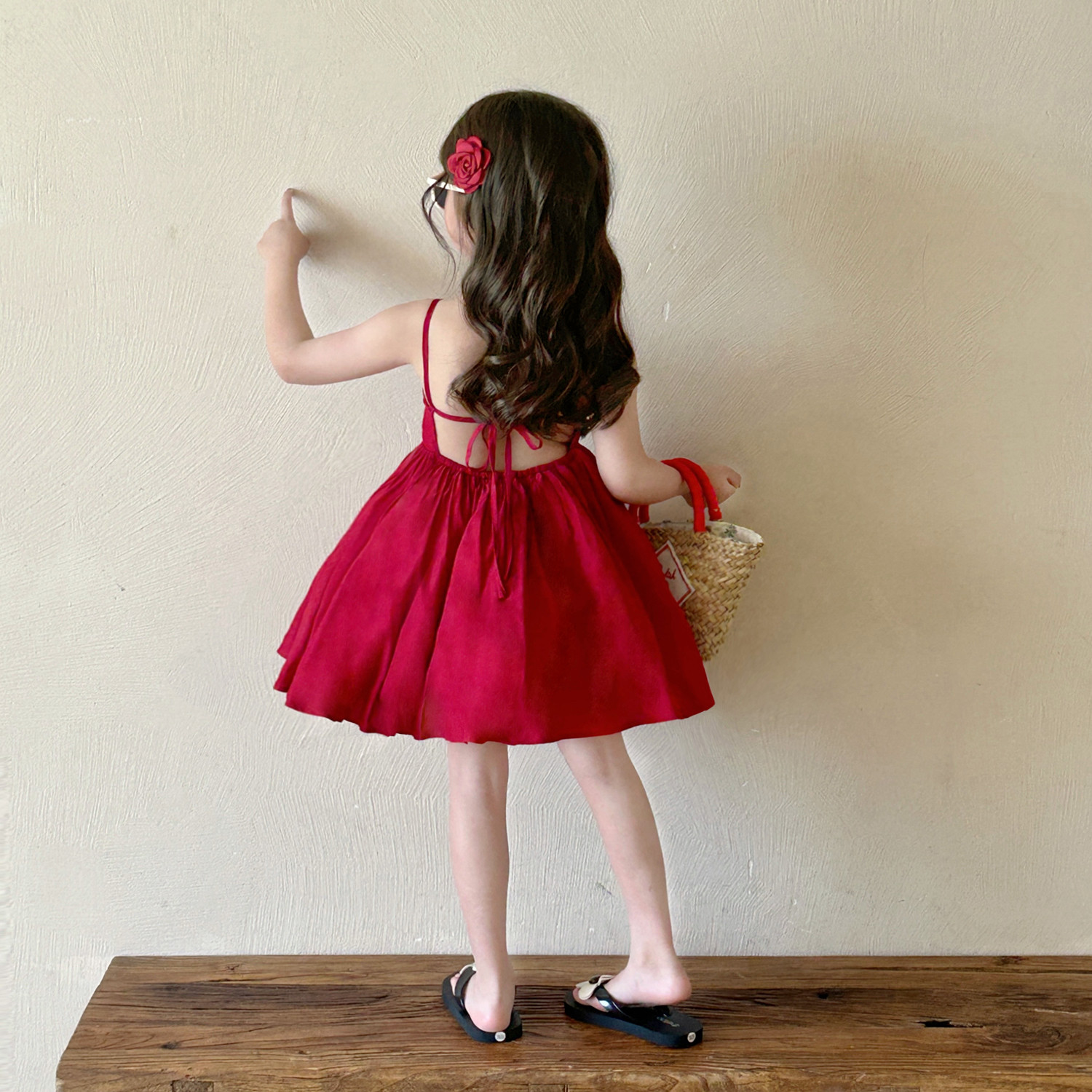 女童设计感露背连衣裙2026夏新款小女孩气质时尚度假风吊带连衣裙