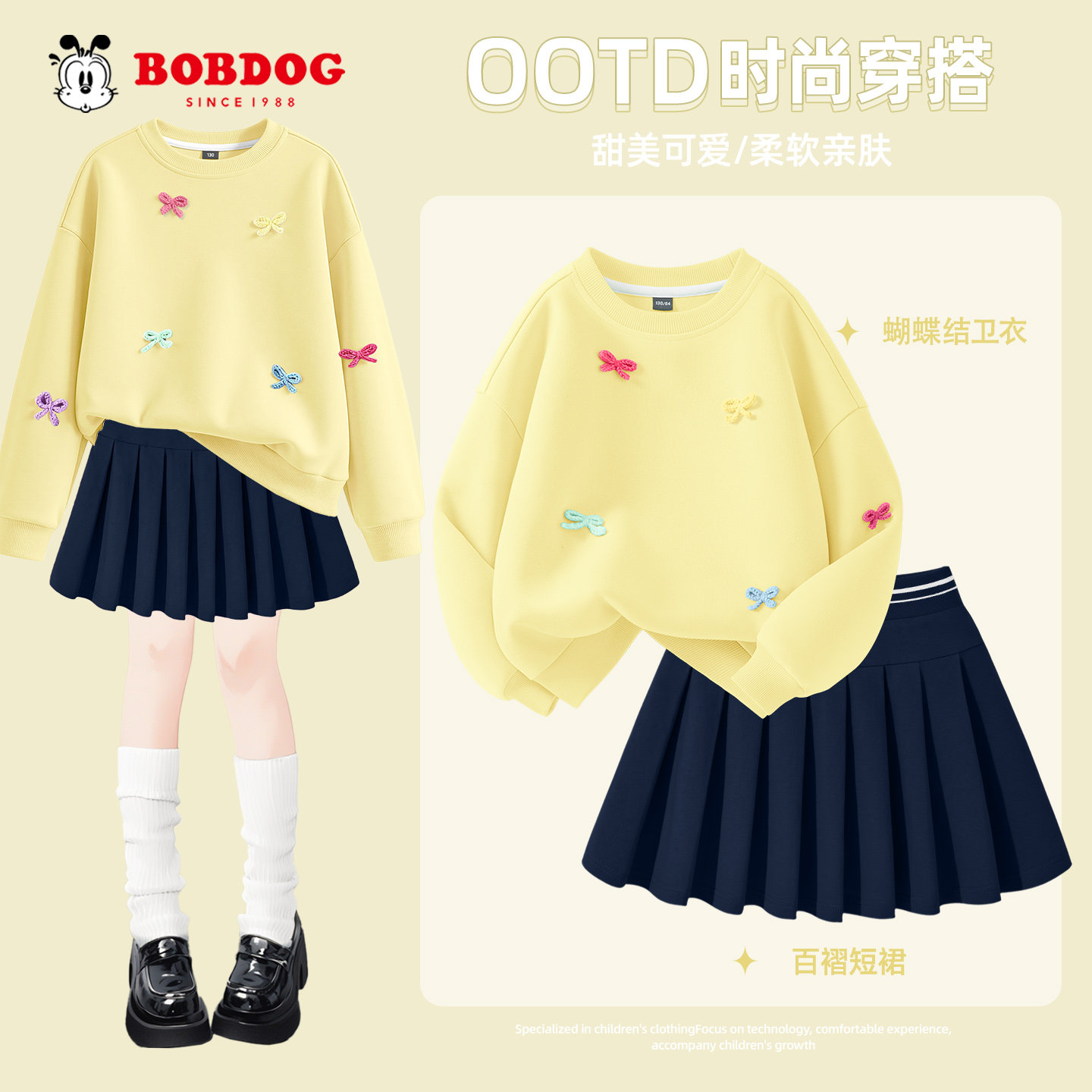巴布豆童装儿童套装2026新款洋气学院风卫衣裙子女童春装百褶裙女