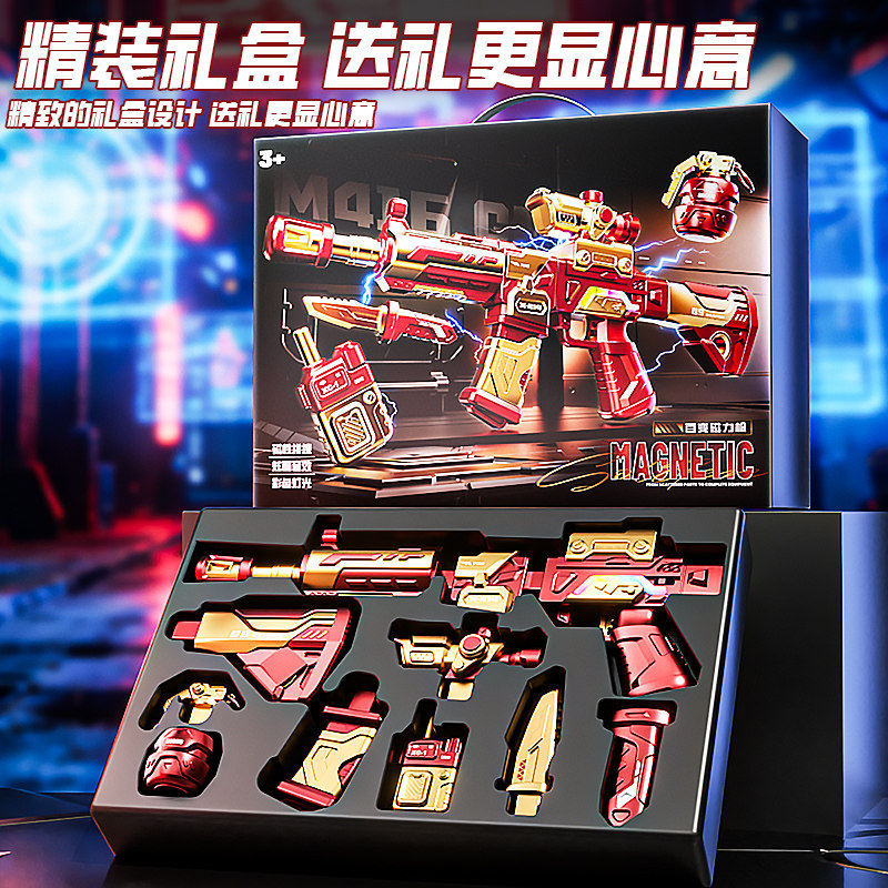 儿童电动声光玩具枪百变组合拼装磁力枪3仿真6岁男孩生日礼物男童