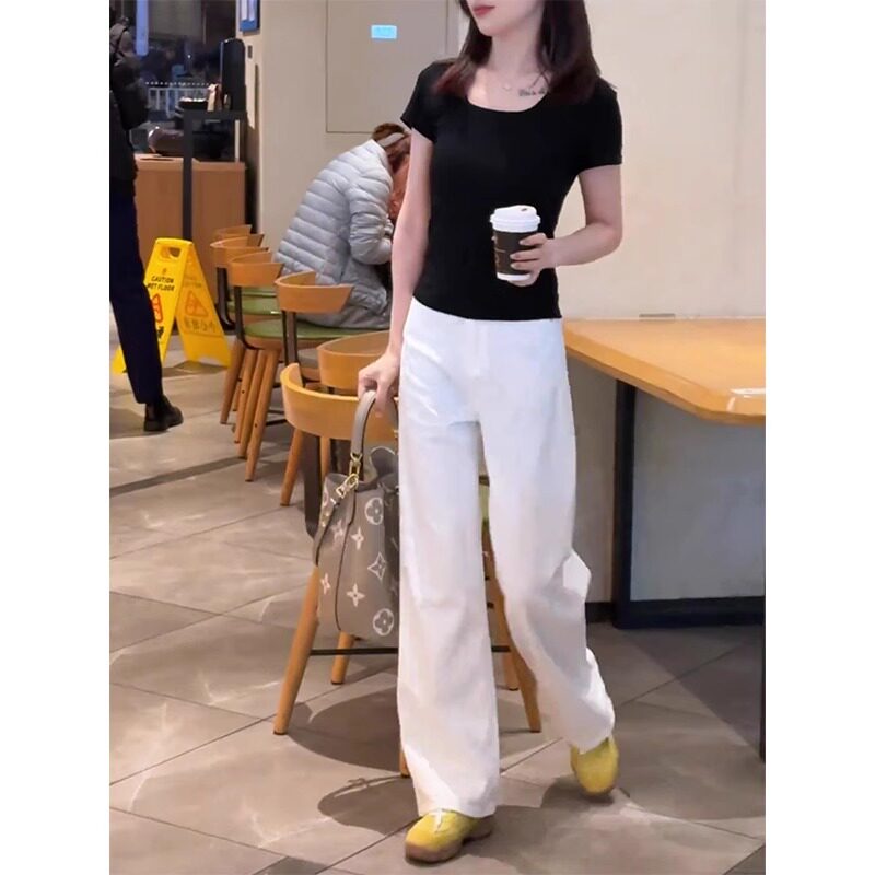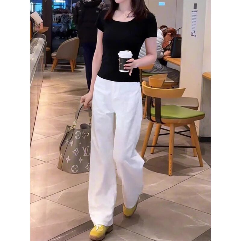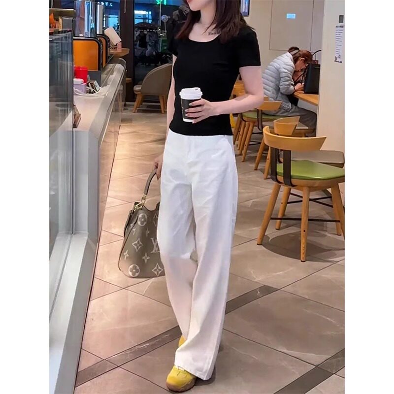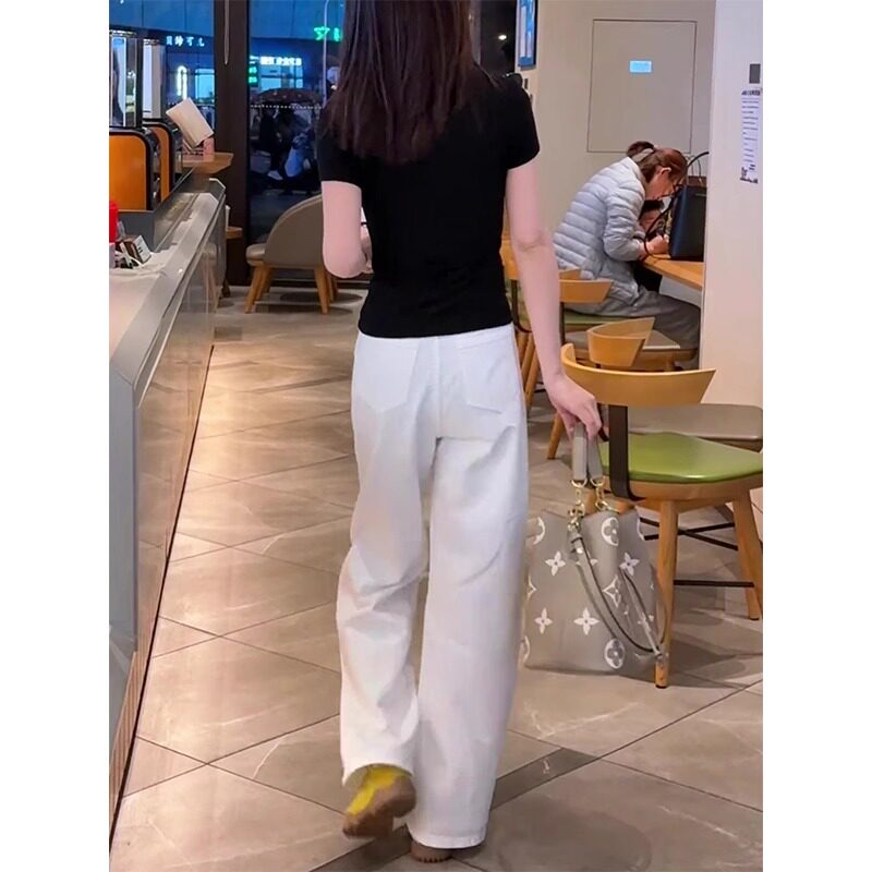 白色牛仔裤女夏季薄款2026新款高腰小个子休闲垂感窄版直筒阔腿裤