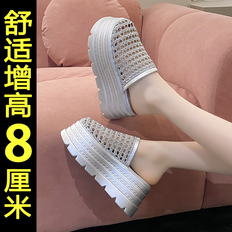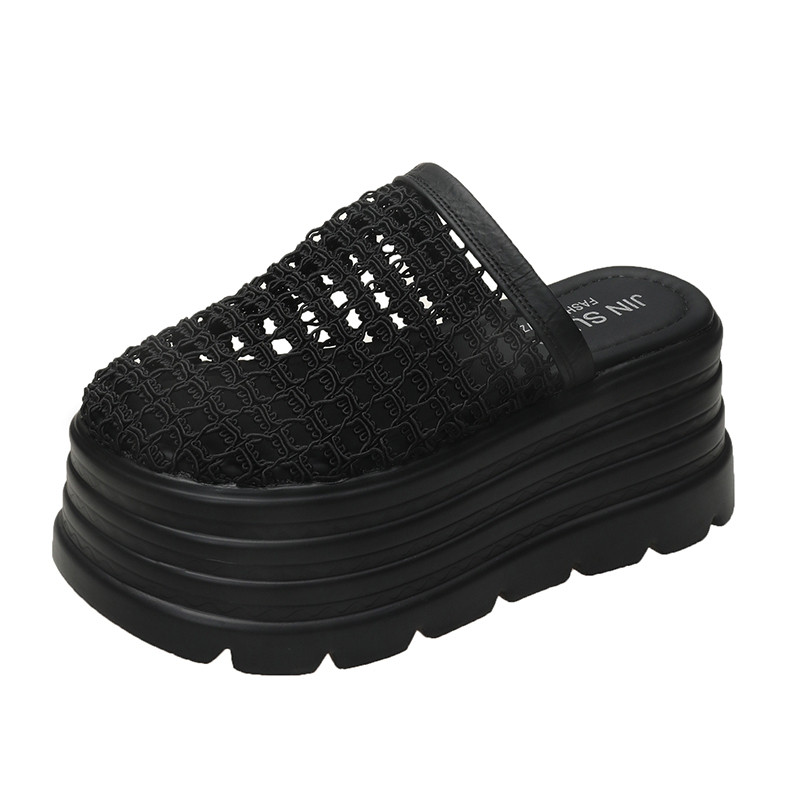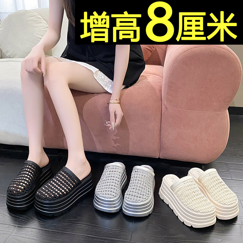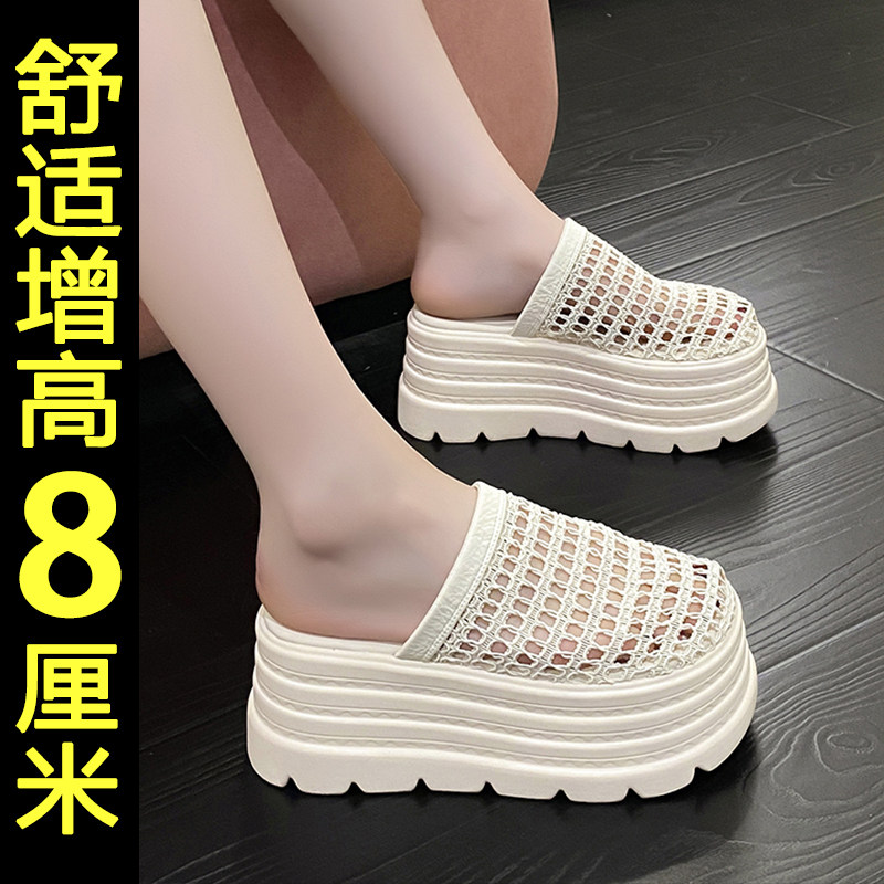 厚底黑色包头半拖鞋女2026新款夏季百搭配裙子绝美编织沙滩凉拖鞋