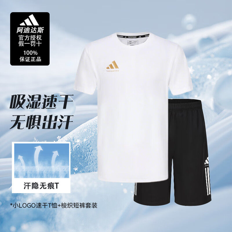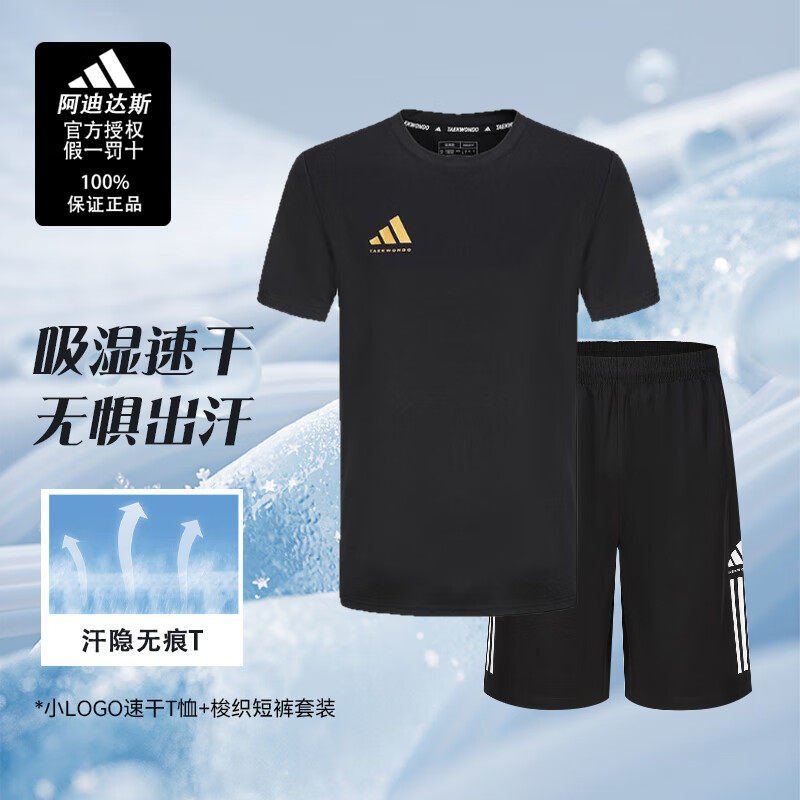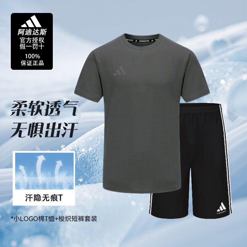 adidas阿迪达斯运动套装男子短袖夏装两件套休闲跑步短袖短裤