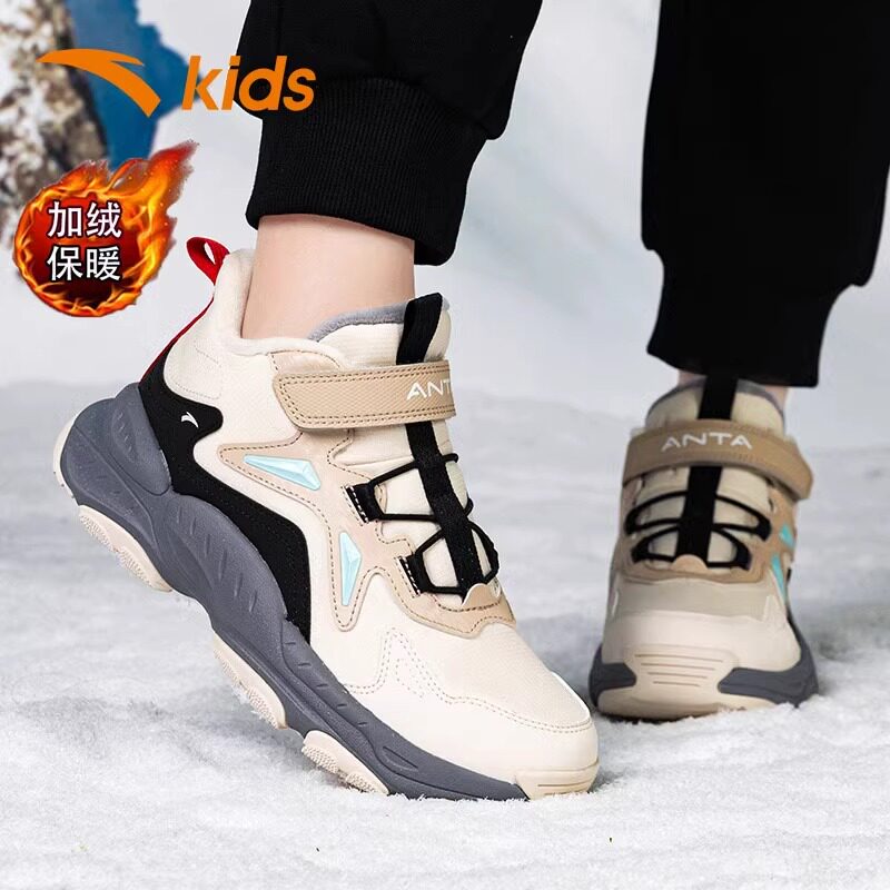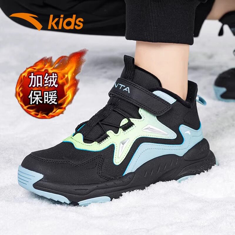 安踏儿童男童棉鞋2026春季新款中大男童运动鞋加绒加厚透气二棉鞋