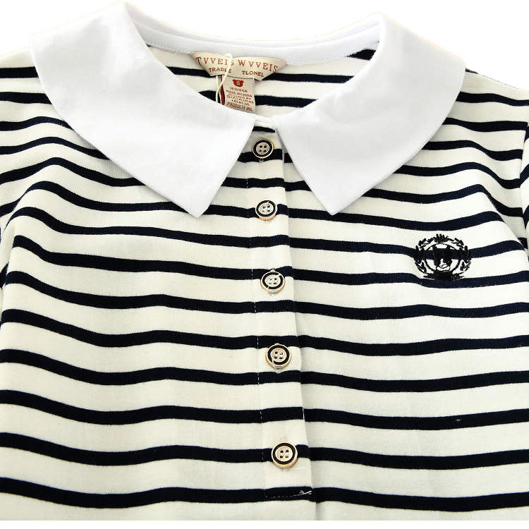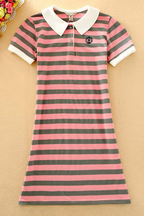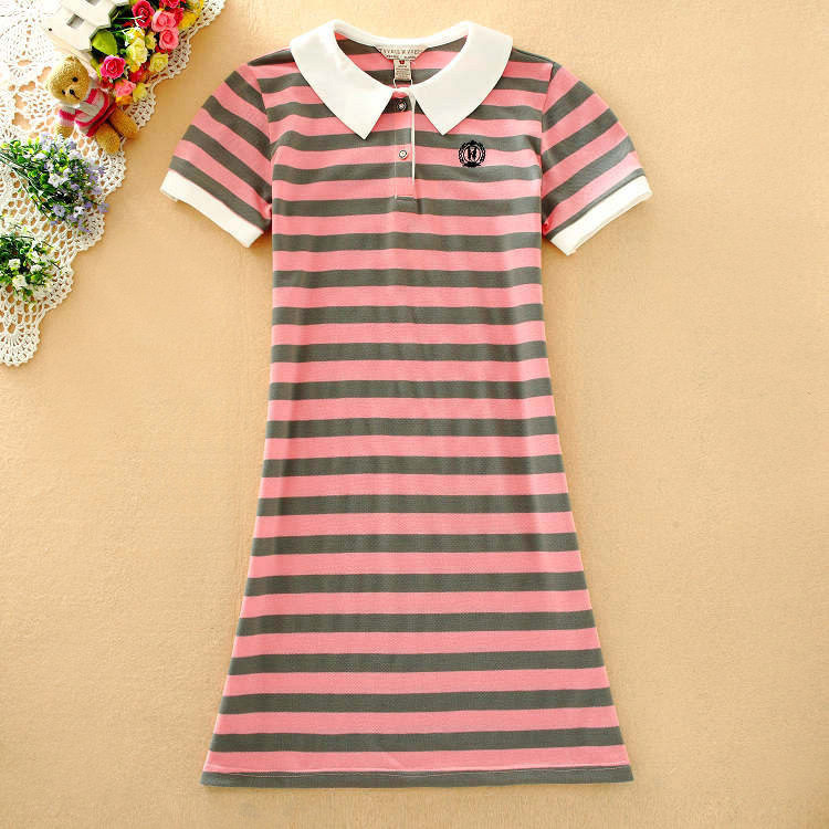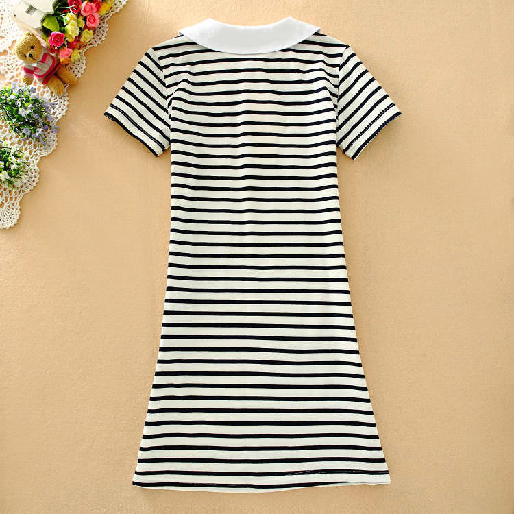 2022夏季青少年女孩休闲条纹修身网球裙娃娃领短袖连衣裙中学生