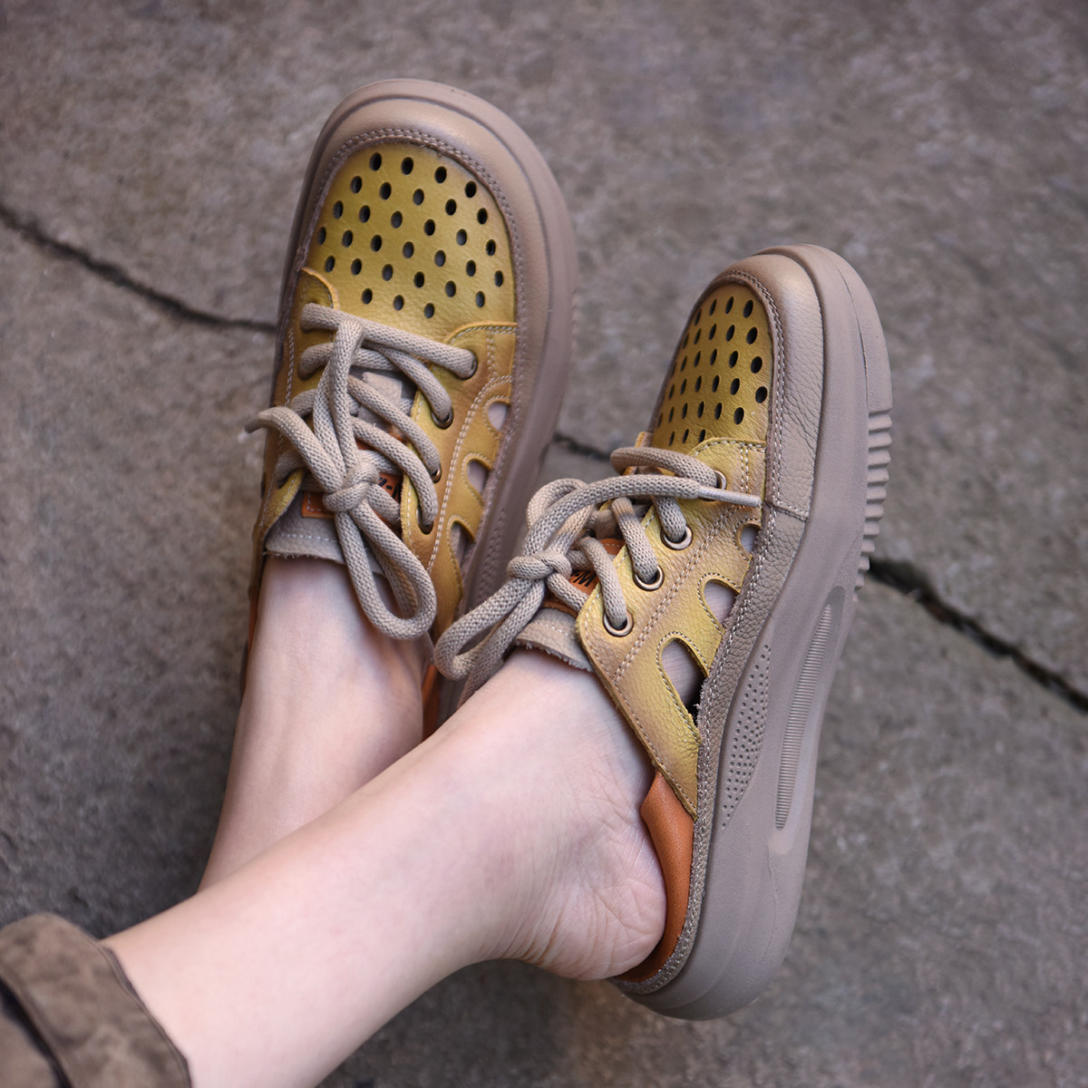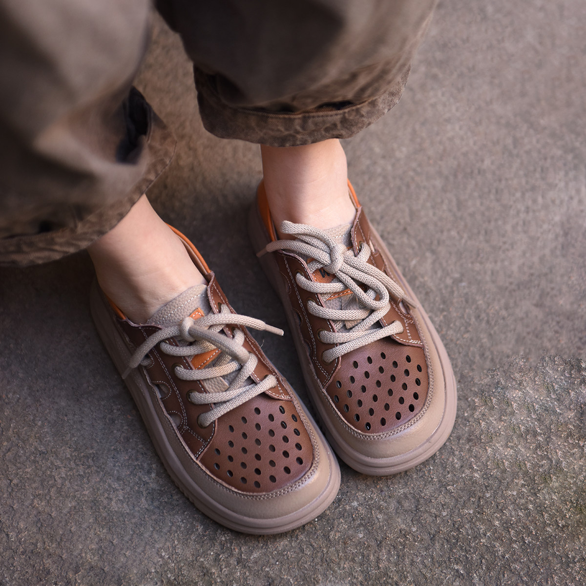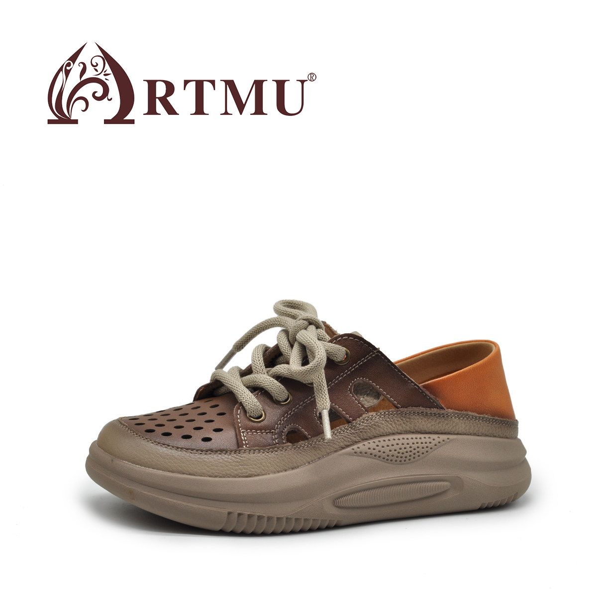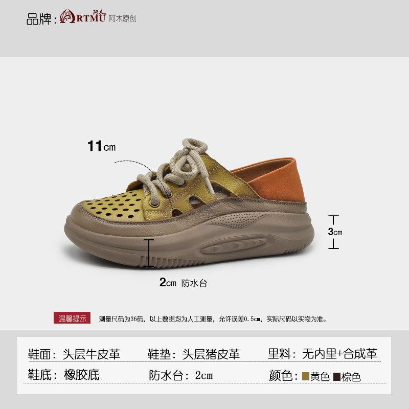 Artmu阿木镂空厚底休闲鞋真皮两穿凉鞋女款2026新款百搭老爹鞋