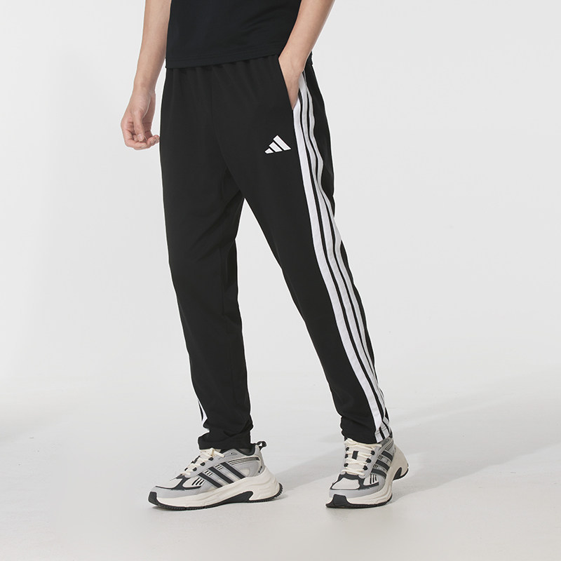阿迪达斯运动套装男装 2026春季新款白色圆领长袖T恤黑色运动长裤