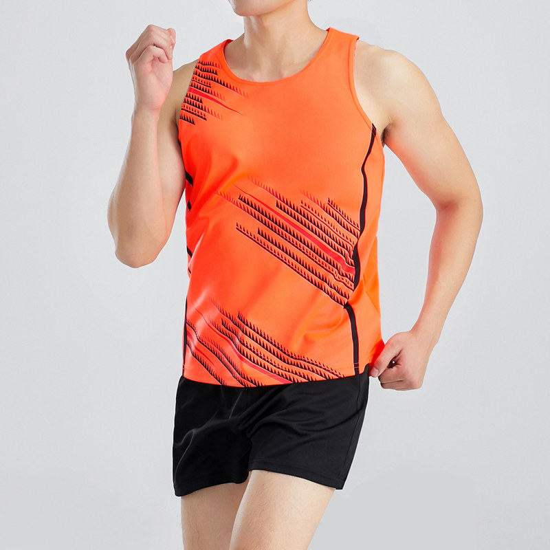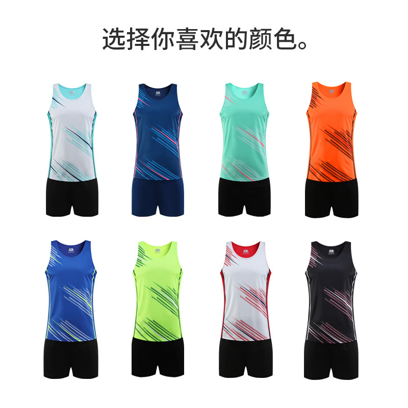 专业马拉松跑步田径训练服运动套装健身上衣男女短跑速干工字背心