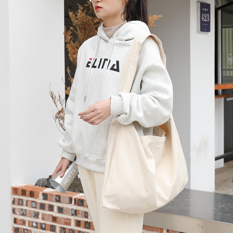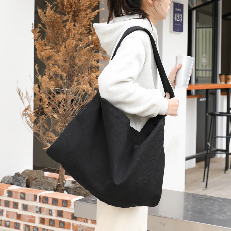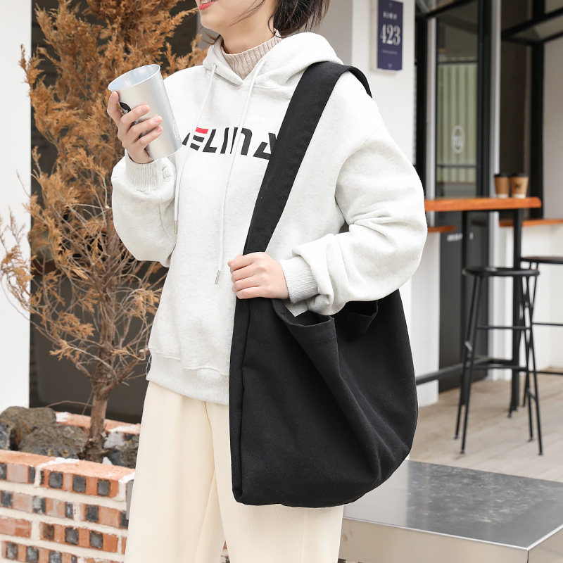ins流行宽肩带帆布托特包简约百搭大容量单肩包学生上课斜挎布袋