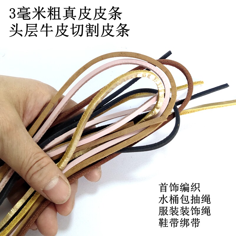牛皮鞋带方形深棕色浅棕色高档复古皮条头层皮切割皮绳3mm挂绳