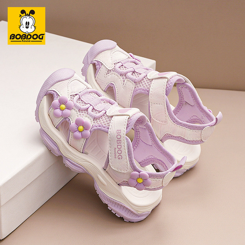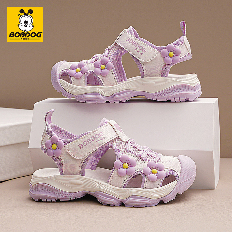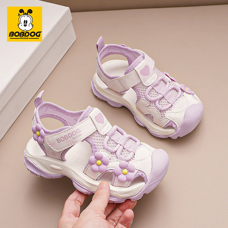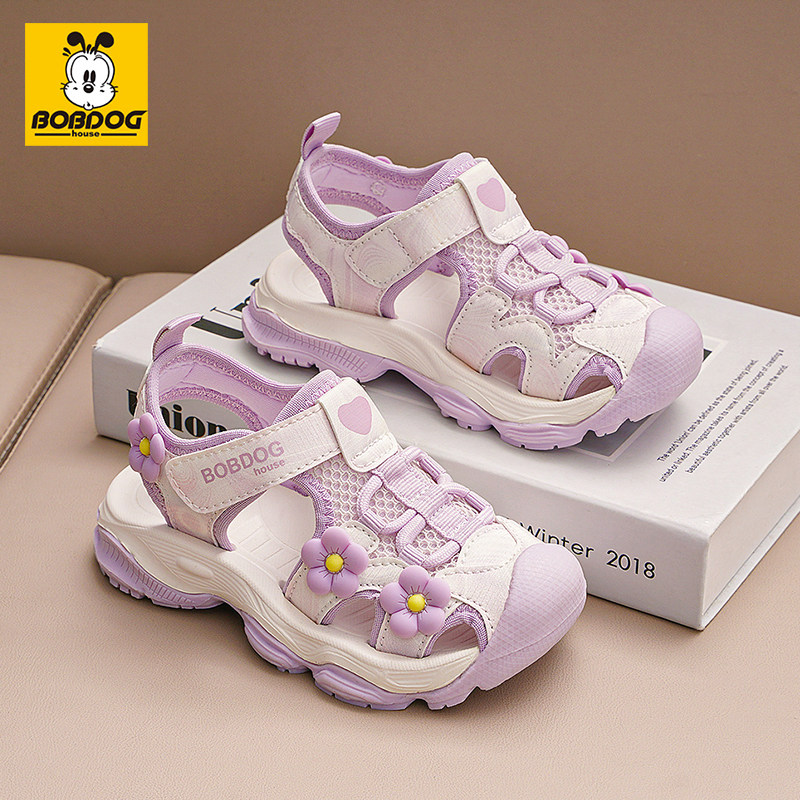巴布豆女童凉鞋2026夏季新款包头花朵户外沙滩鞋软底防滑休闲鞋子