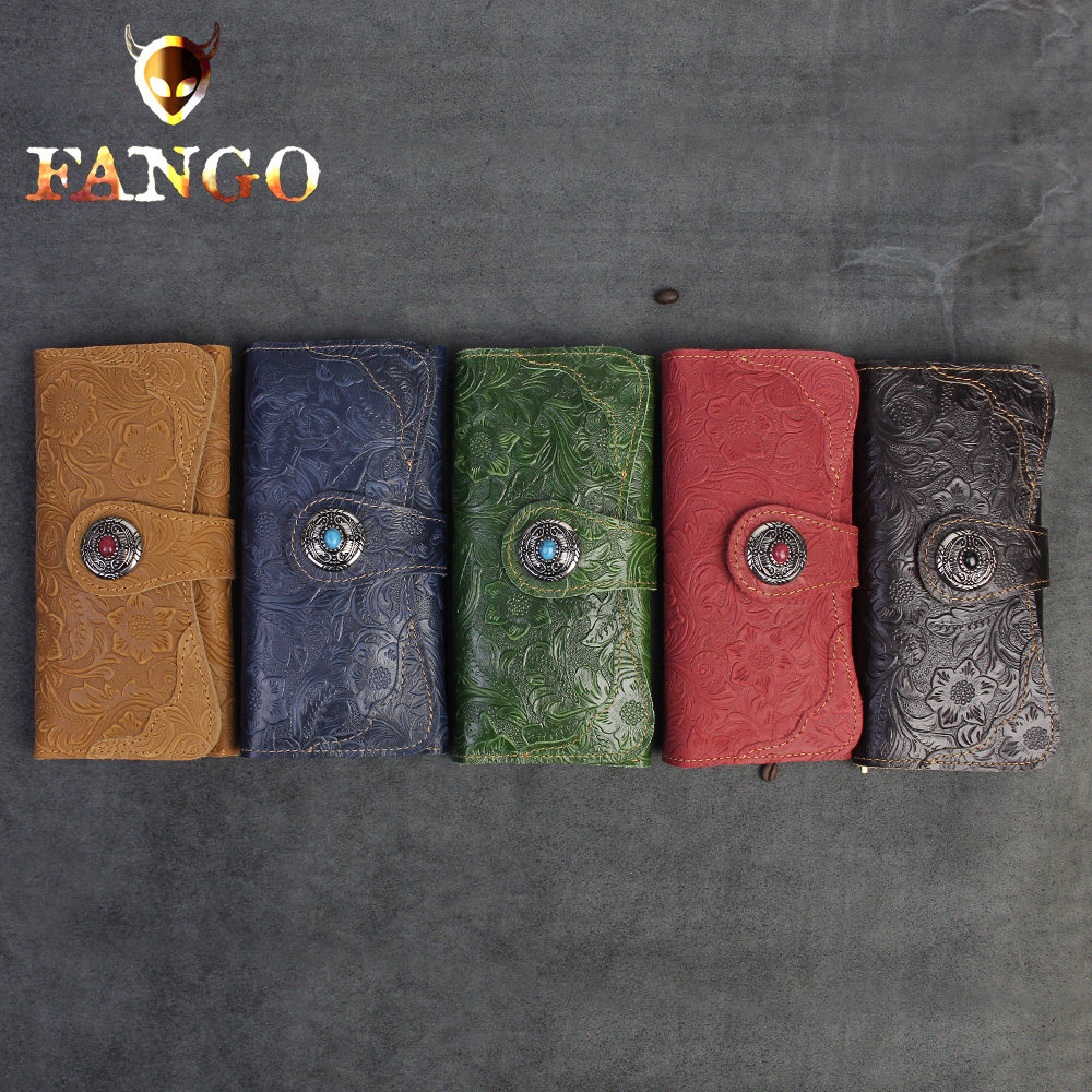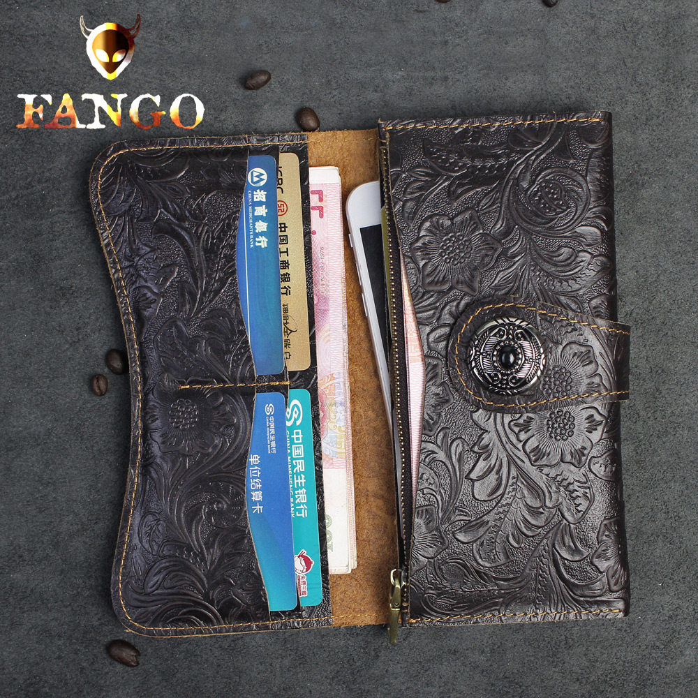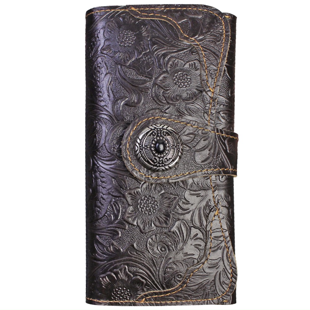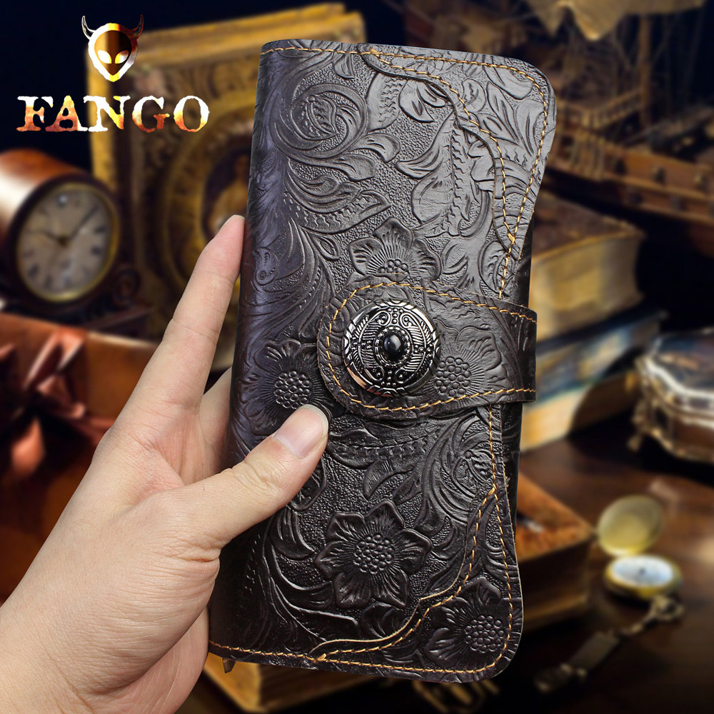 原创手工真皮长款钱包男女头层牛皮搭扣钱包疯马皮复古财布钱夹潮