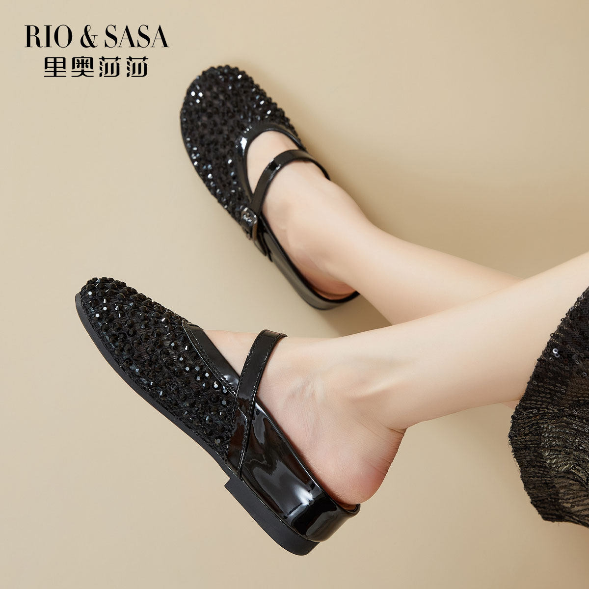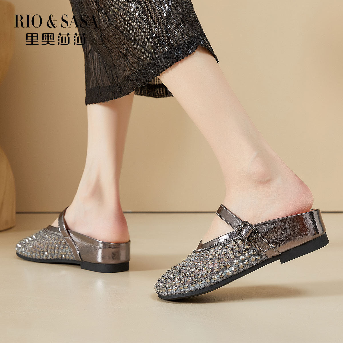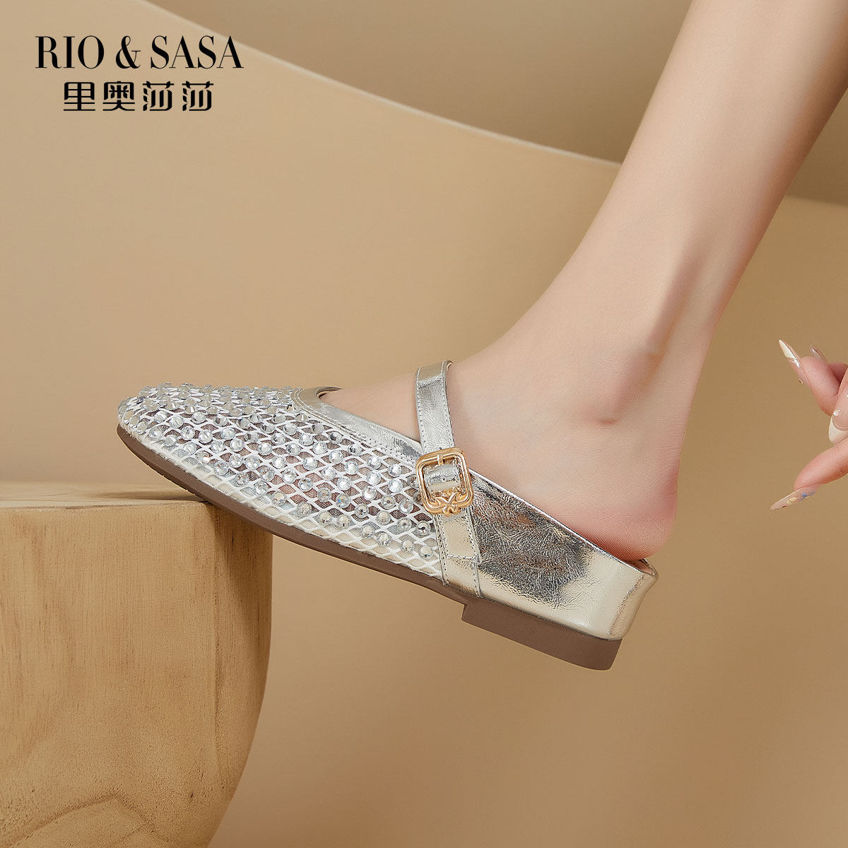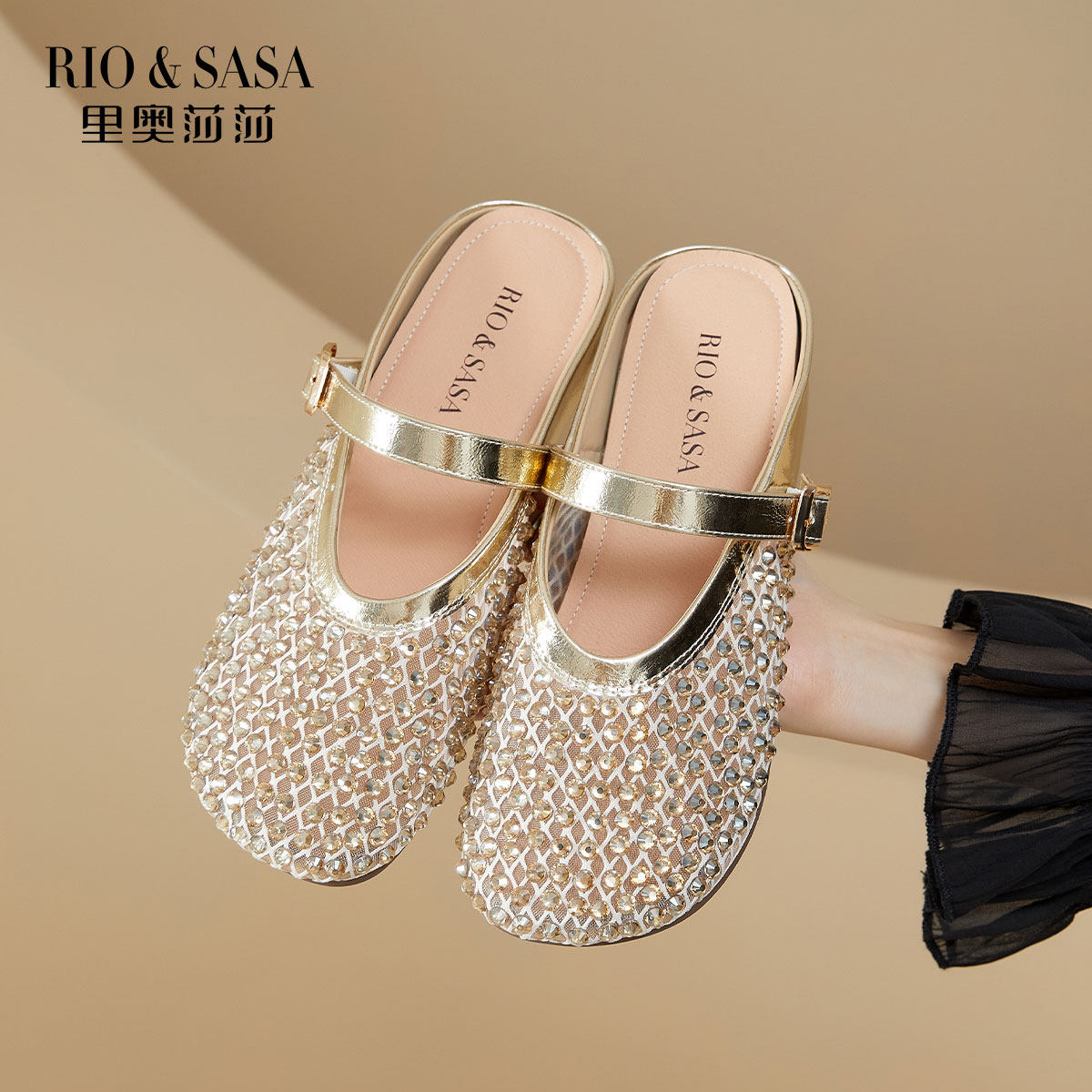 里奥莎莎爆款水钻包头凉鞋女2026水钻网面一脚蹬内增高绝美凉拖鞋