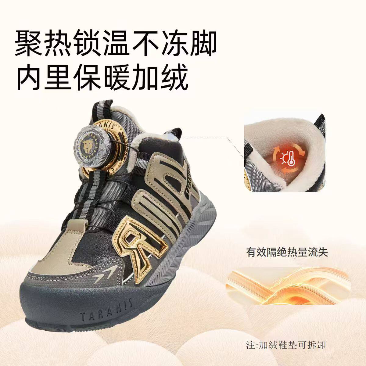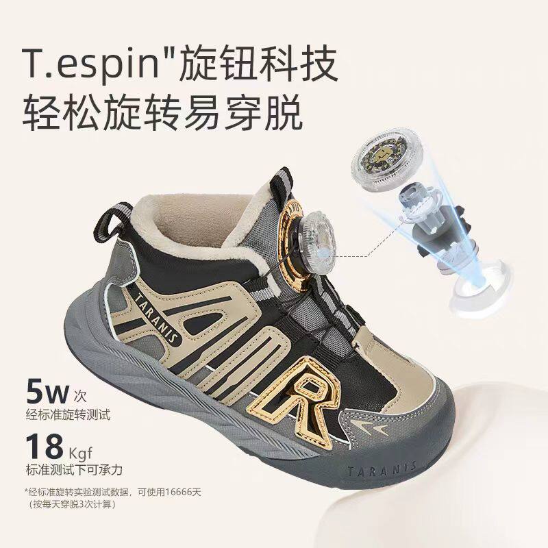 泰兰尼斯冬运动鞋男童平衡车鞋旋钮加绒保暖棉鞋跑步鞋T01X4D5454
