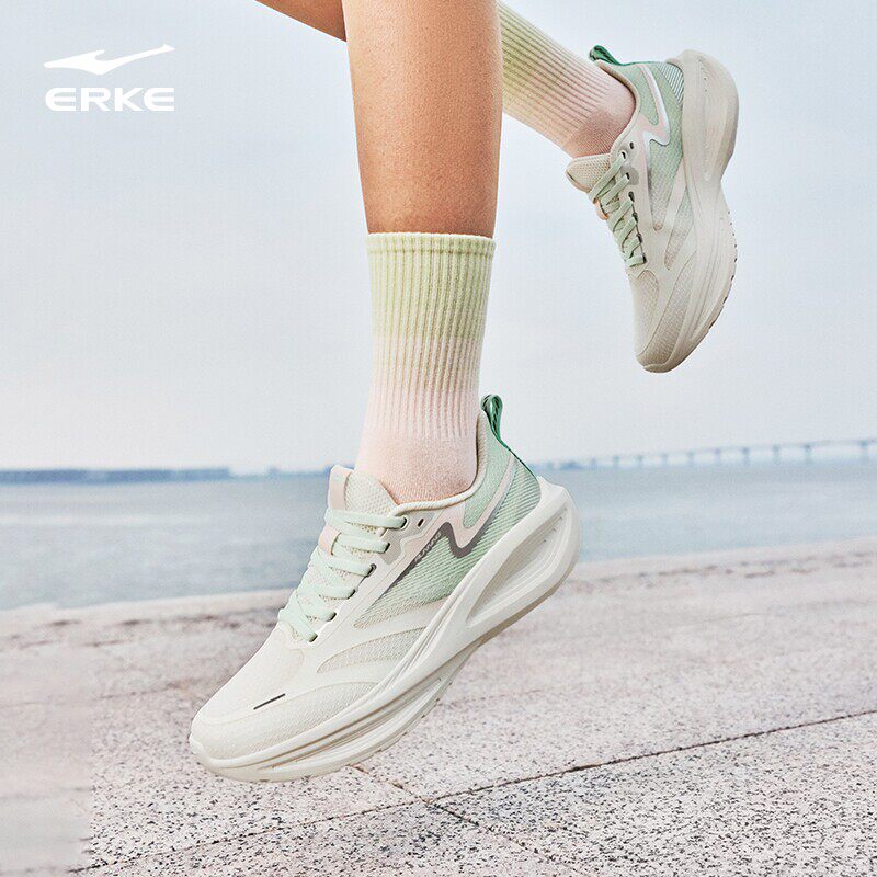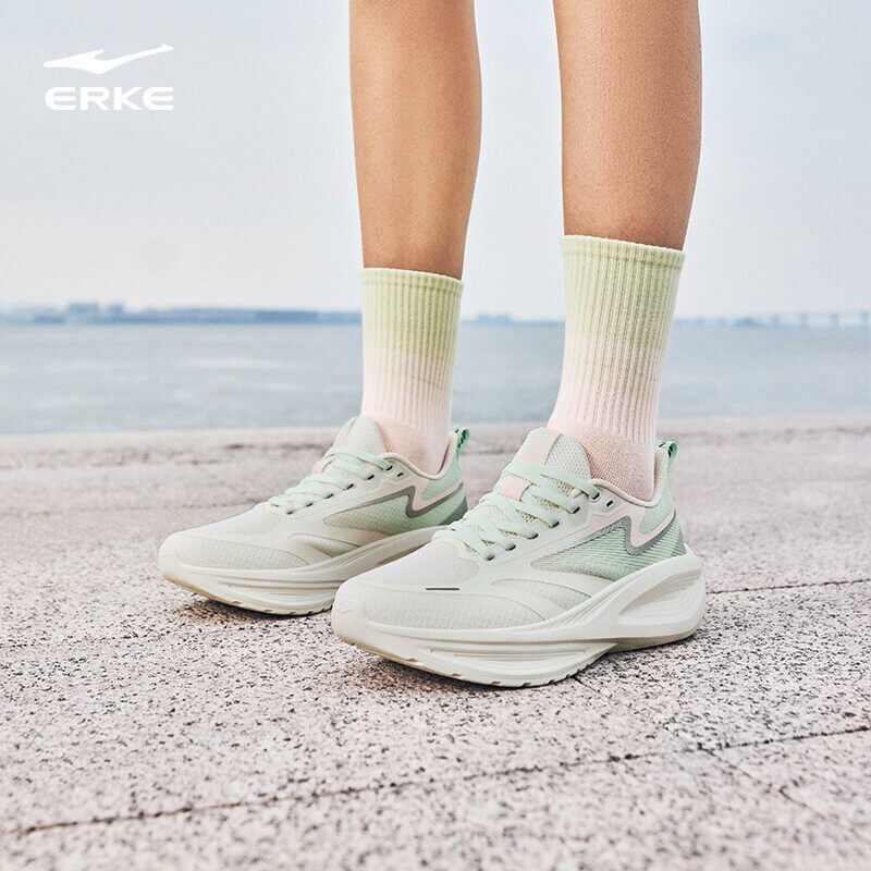 乘风鸿星尔克女运动鞋2026新款绿色网面透气初中生中考体测跑鞋子