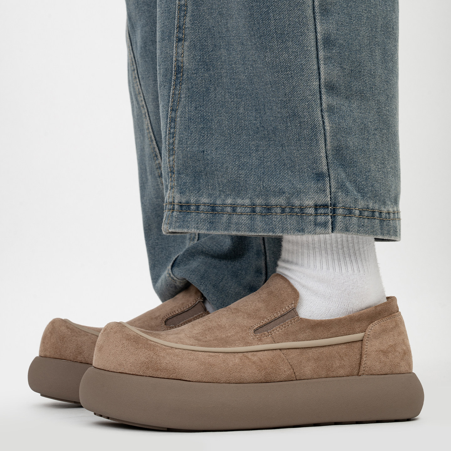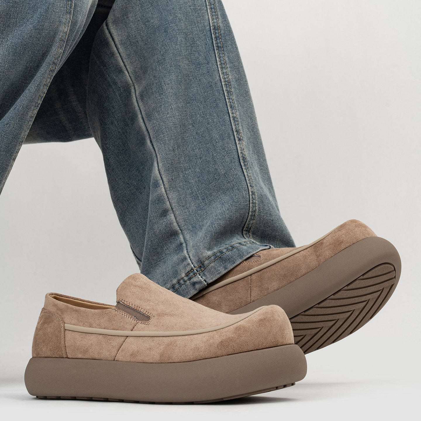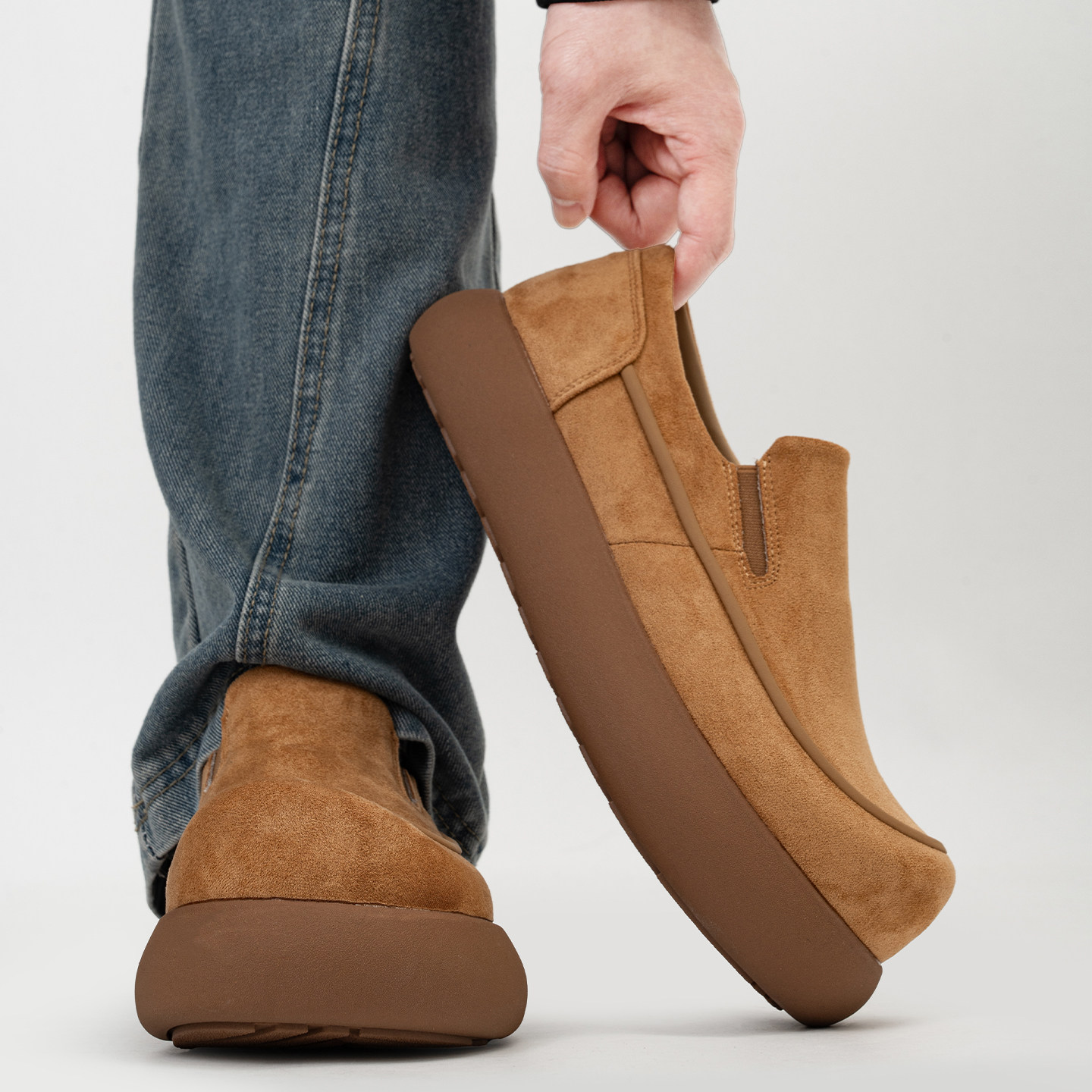 复古大头乐福鞋男士通勤休闲一脚蹬套脚懒人鞋全包厚底增高勃肯鞋