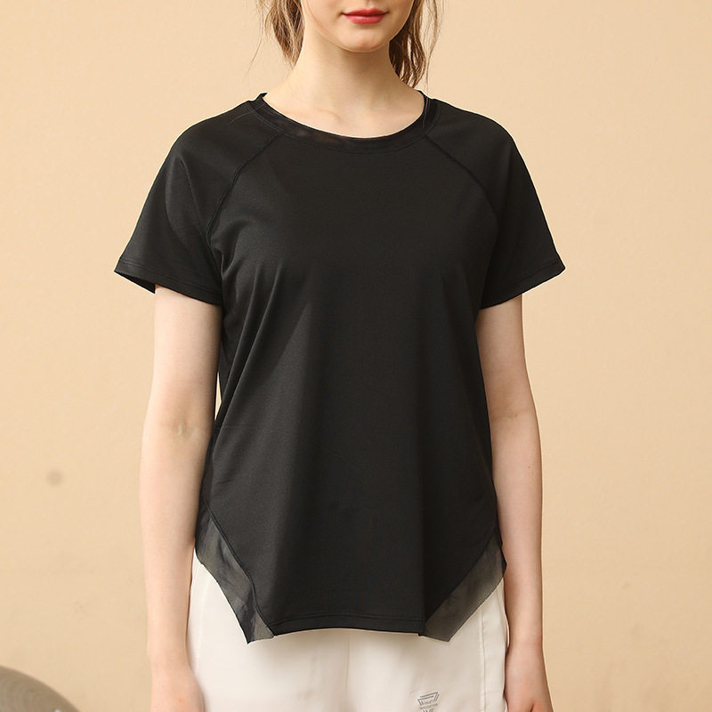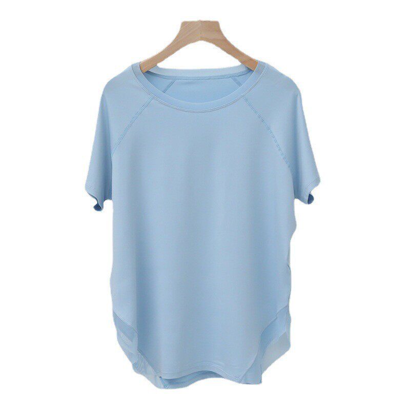 健身衣女短袖长款速干宽松遮屁股跑步运动t恤中长款大码瑜伽上衣